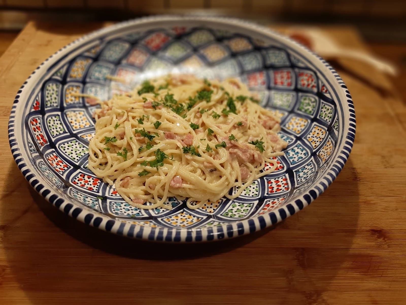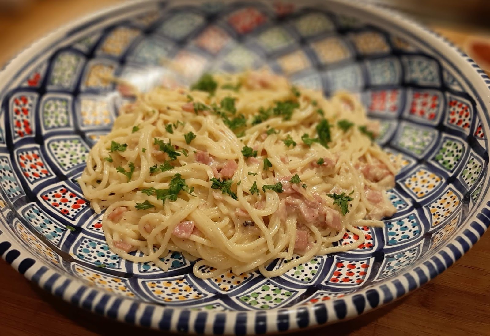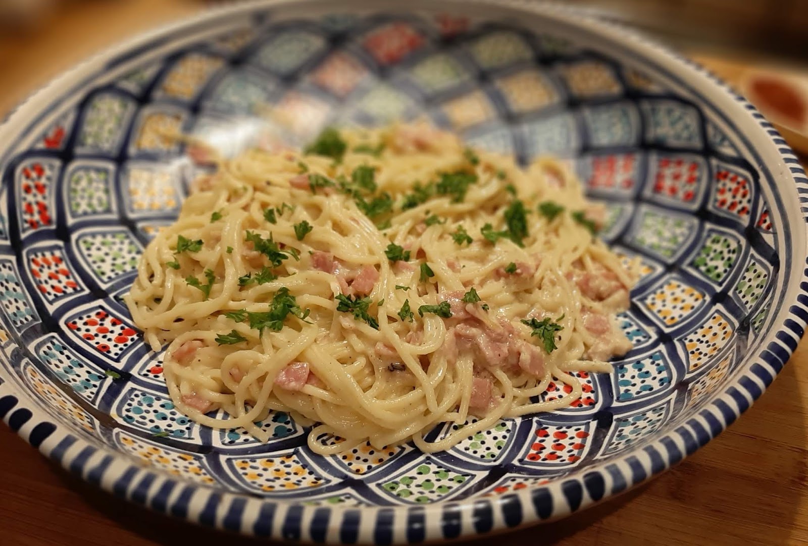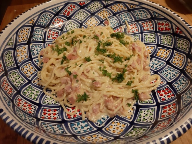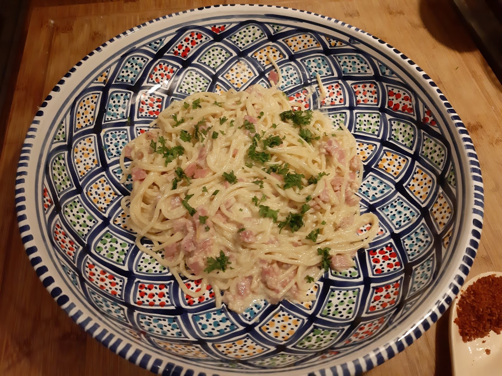 Амииииии да се наслаждаваме на моите спагети a la Carbonara!
