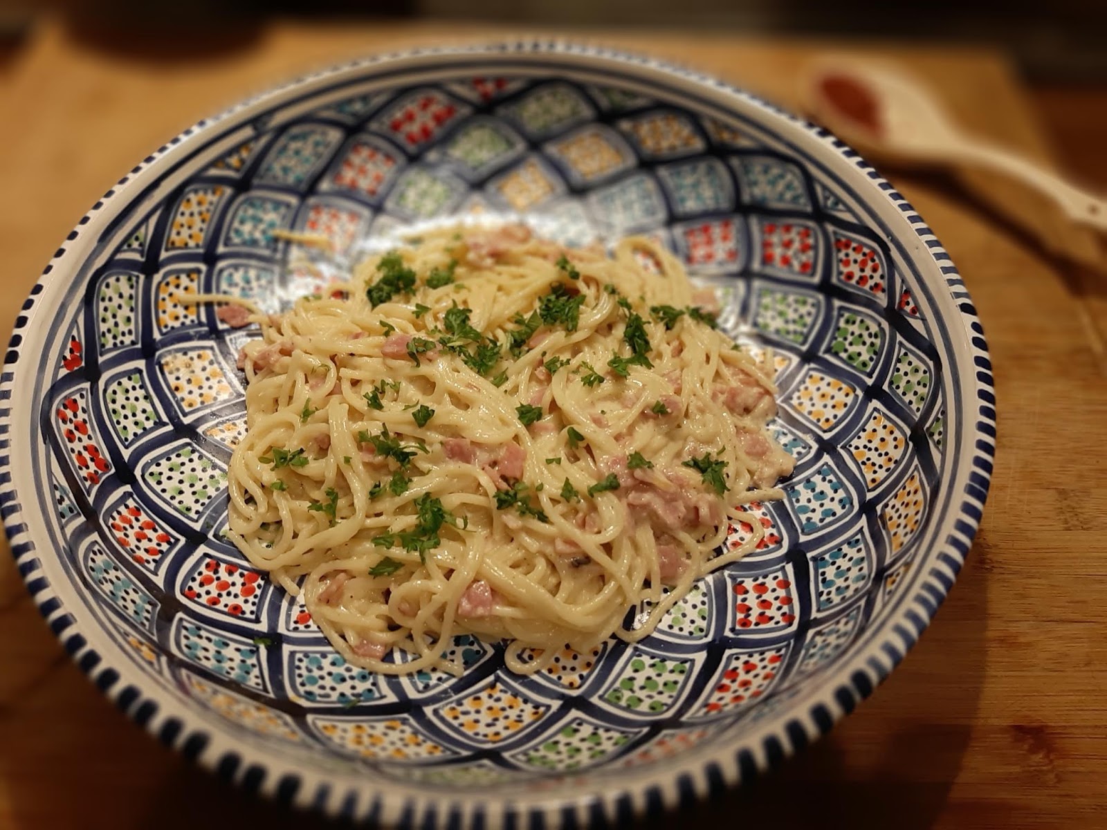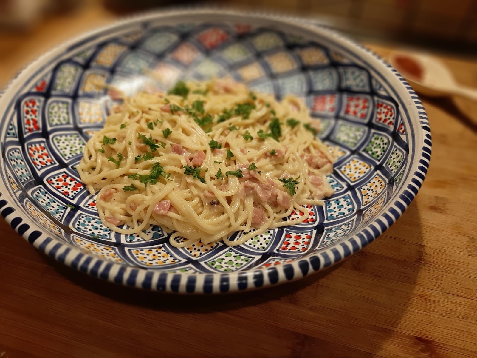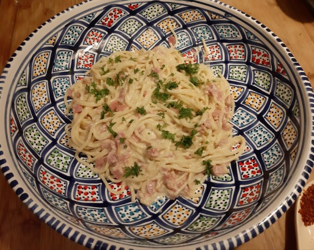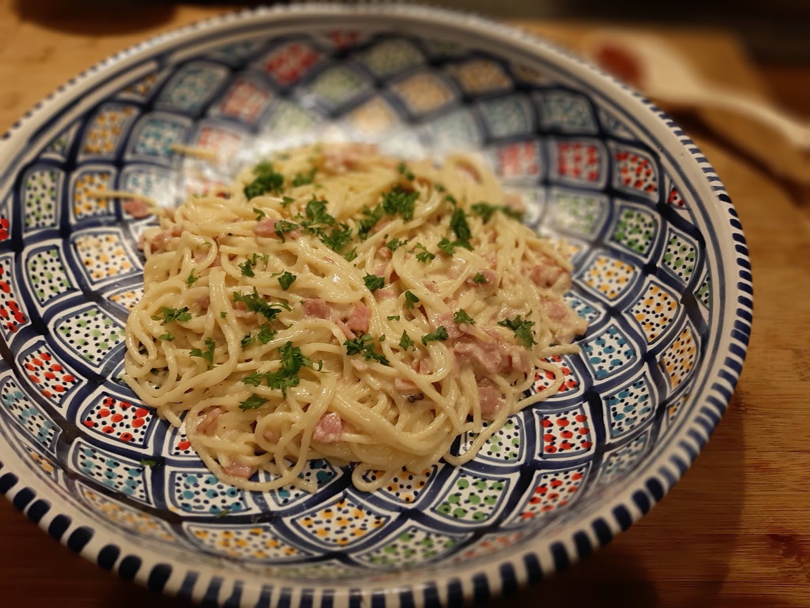 Амииииии да се наслаждаваме на моите спагети a la Carbonara!