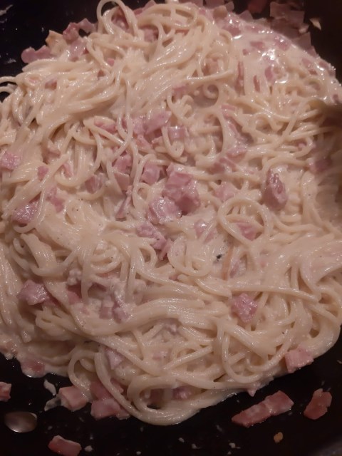 Е, аз от всичко май запазих само черния пипер😂😂😂😂😂😂😂😂. Ама все пак исках да пресъздам моите спомени от 90-те години. Пък и имах една шунка, която за малко да я изпусна и да се развали. В същност тя беше и поводът за направата на моята Карбонара.