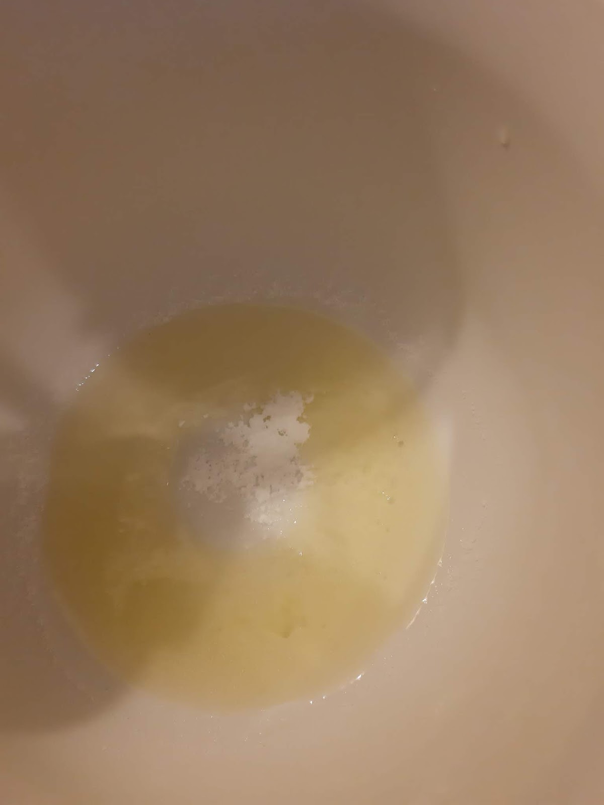 - За целта разбих оставения на студено белтък с пудрата захар и лимоновия сок