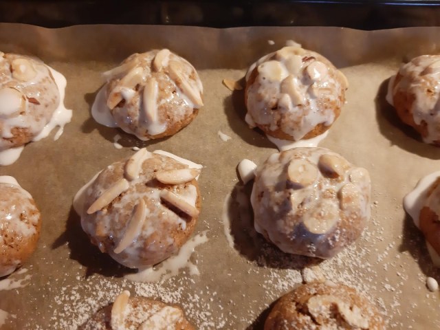 - С тази глазура намазах само половината от сладките, а другата половина поръсих с пудра захар.