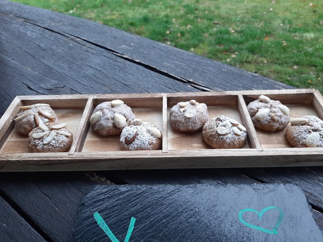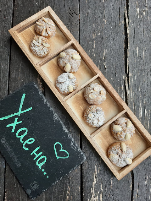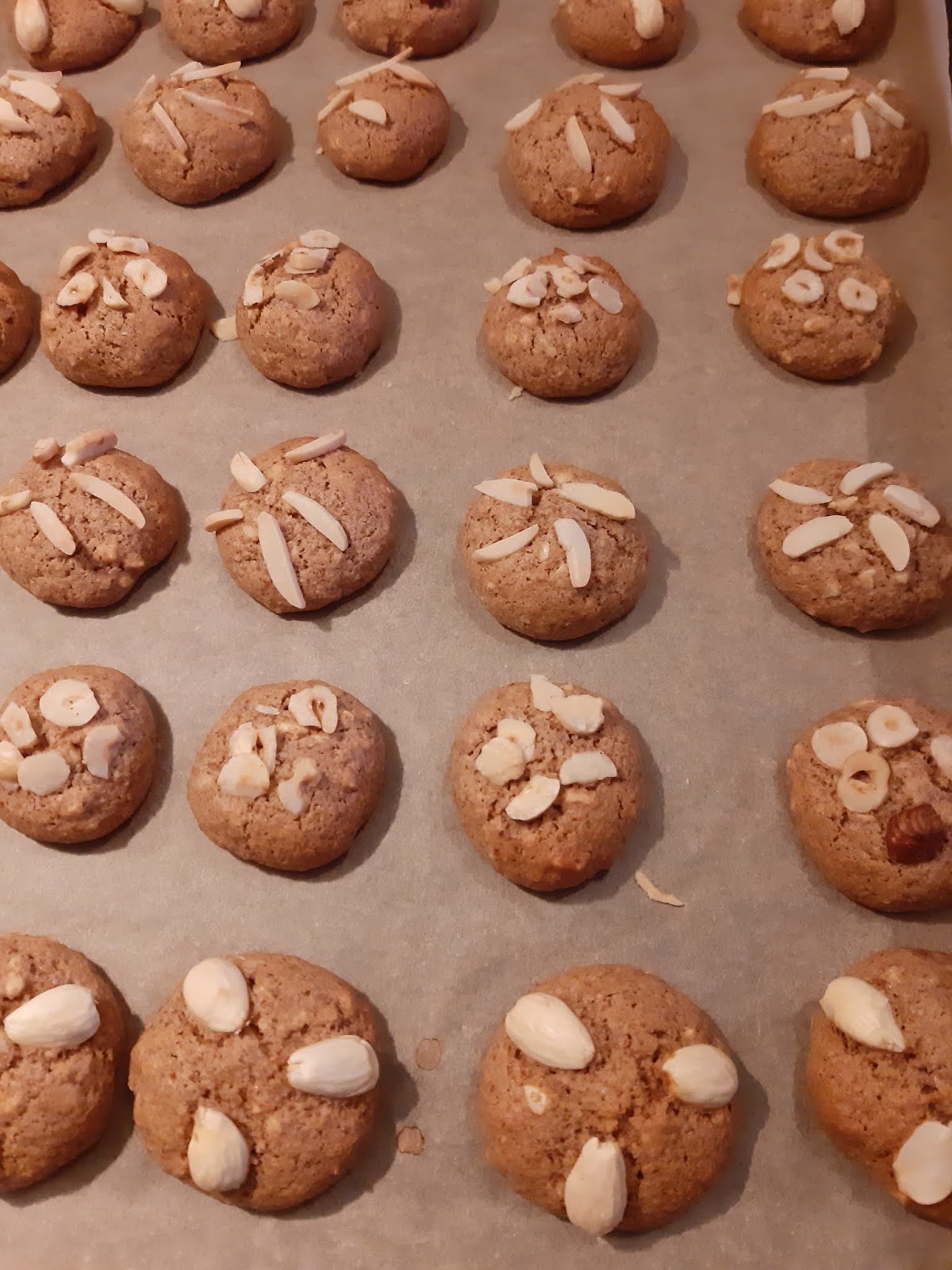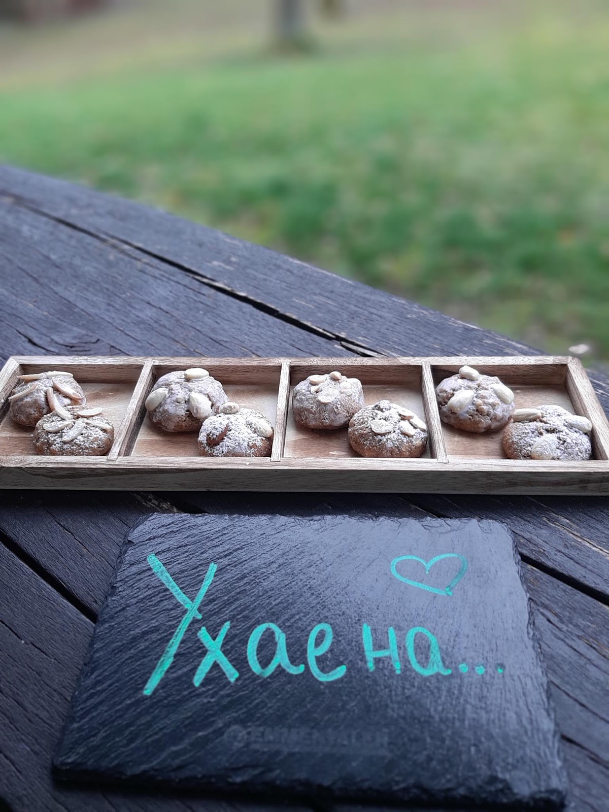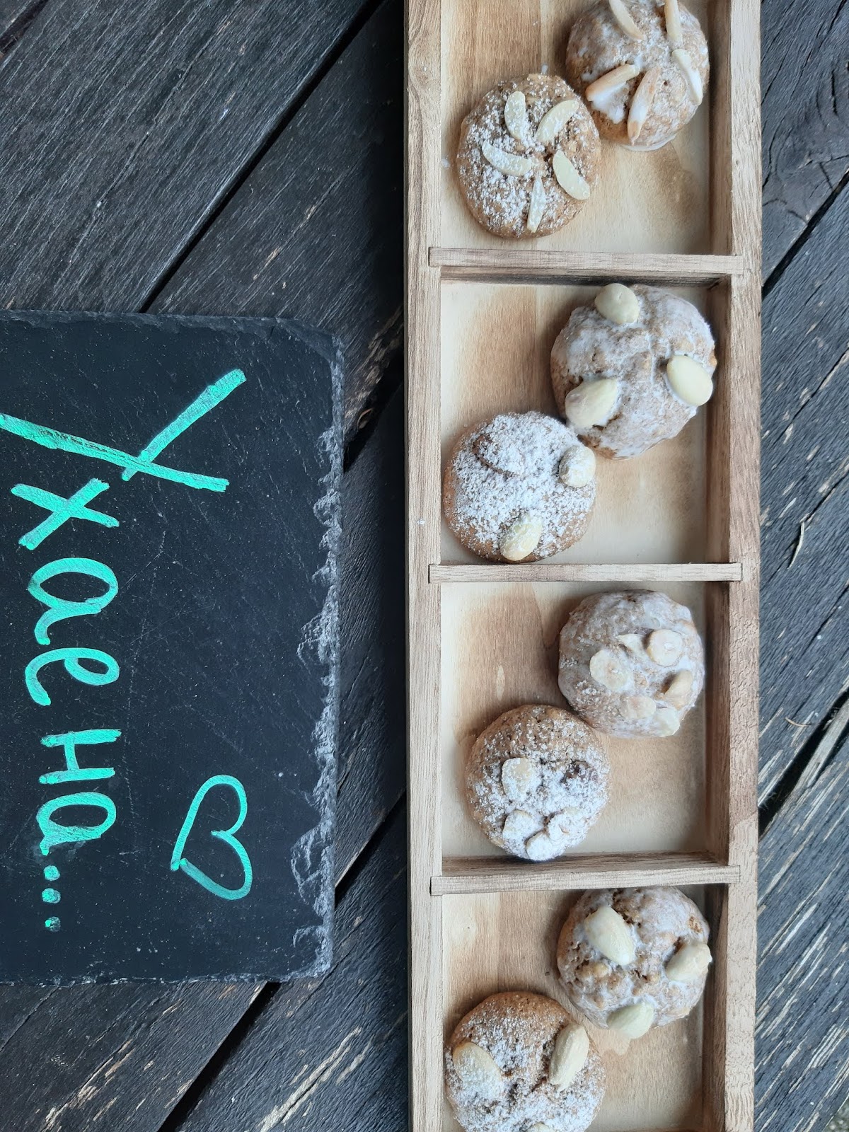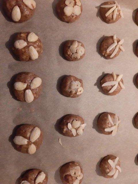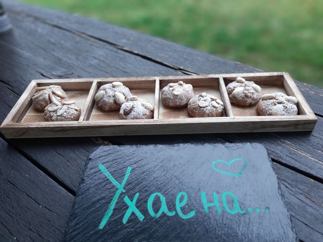 - Украсих сладките с различните ядки – цели бадеми, нарязани лешници или пък пръчици бадеми.