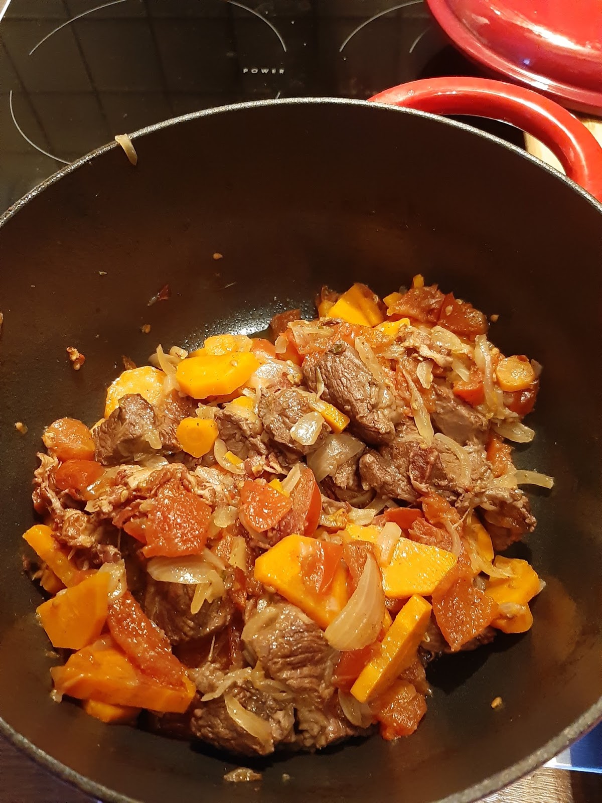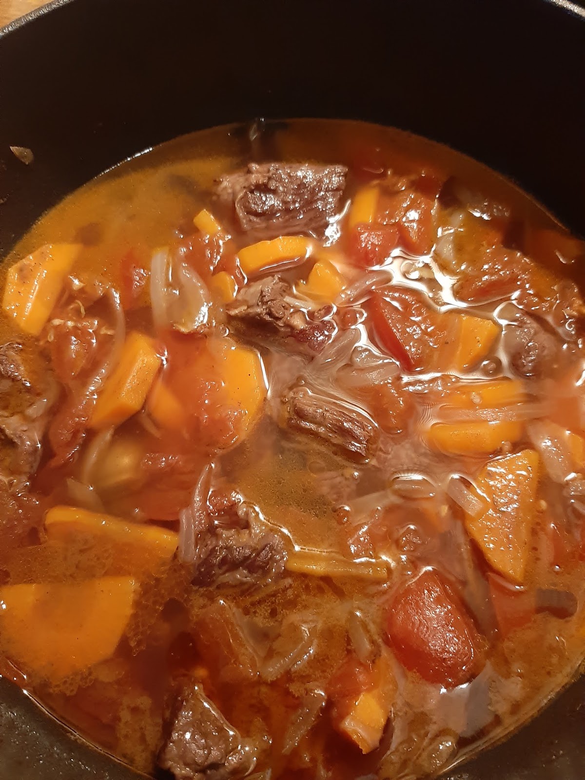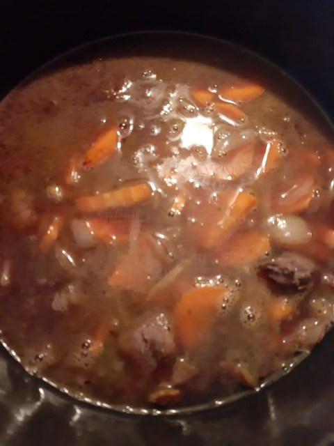 - Допълвам с говежди бульон, но се старая течността да покрие месото с около 2 см.