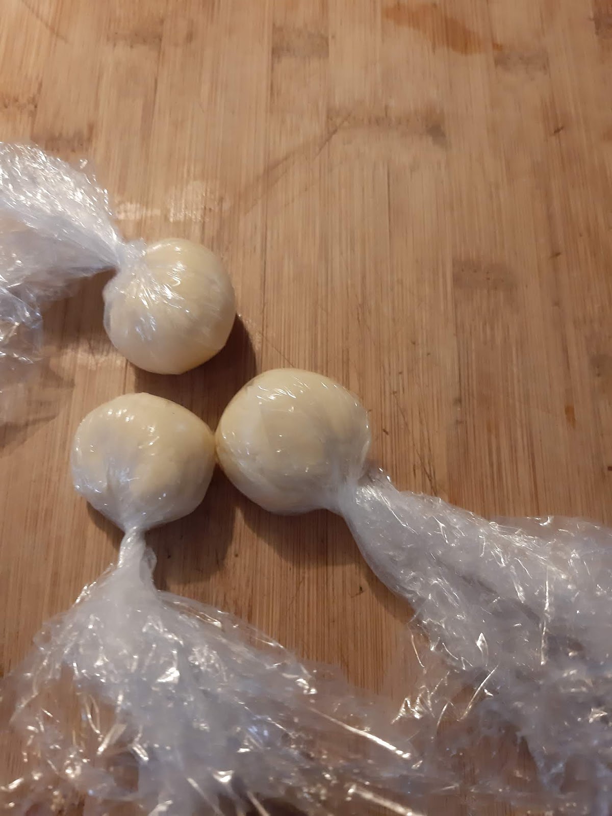 - Всяко топче опаковах във фолио за свежо съхранение и прибрах в камерата на хладилника.