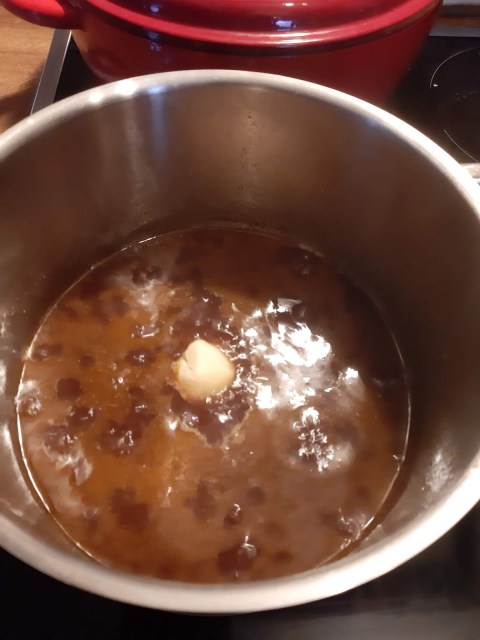 2 чаши основен говежди бульон или концентриран от консерва, в Германия има много добри в буркан