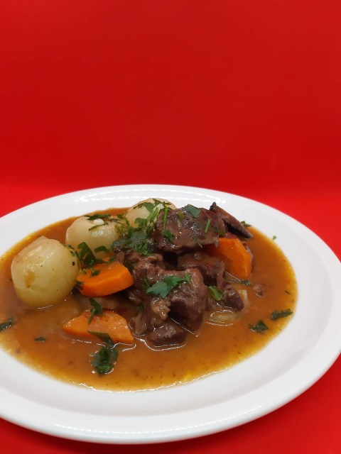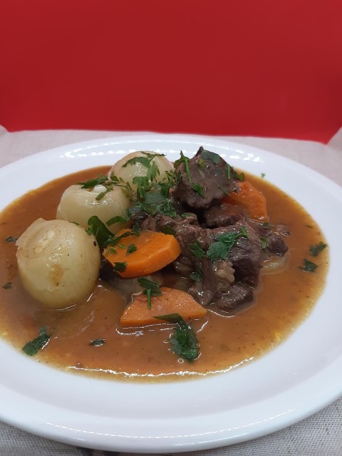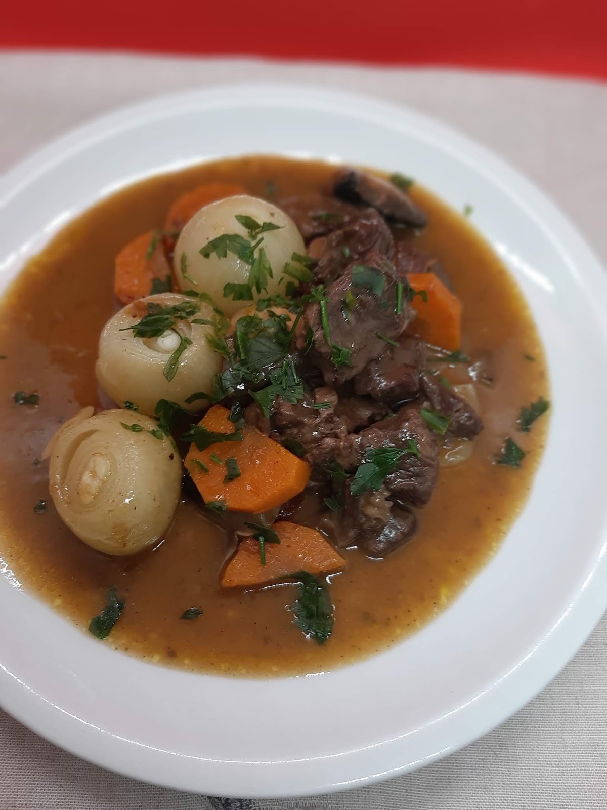 Днес избрах нейната рецепта, за да приготвя историческото говеждо във винен сос. Бьоф Бургиньон е една основна френска рецепта за приготвяне на говеждо месо и си заслужава всяка една домакиня да му обърне нужното внимание. Френската кухня е ненадмината и трябва да се пробва поне един път в живота. А вкусът, вкусът няма как да бъде описан. Просто трябва да приготвите Beef Bourguignon.