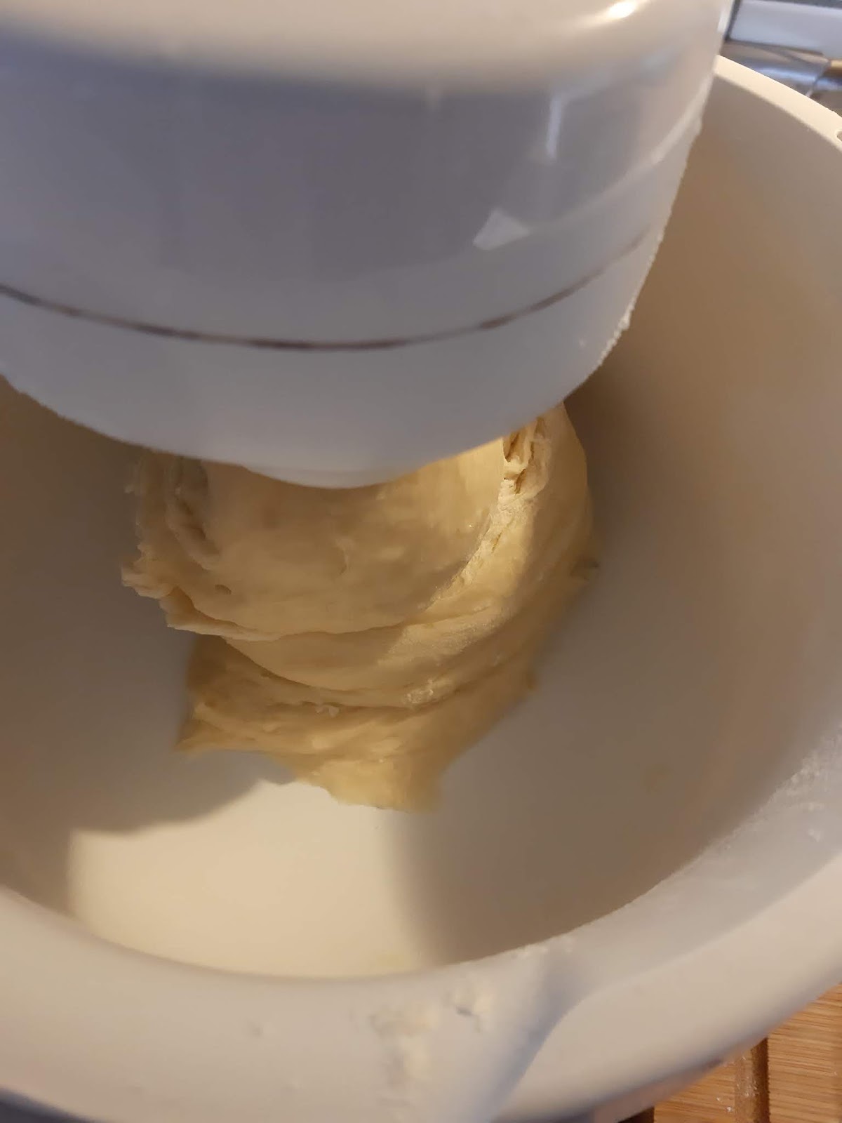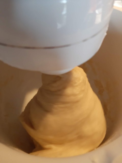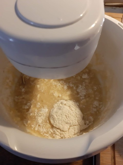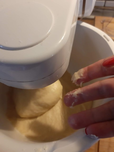 - Меся тестото поне 10 минути с миксер. Това замества удрянето в масата, което са правили жените, за да може да се размеси отвсякъде.
