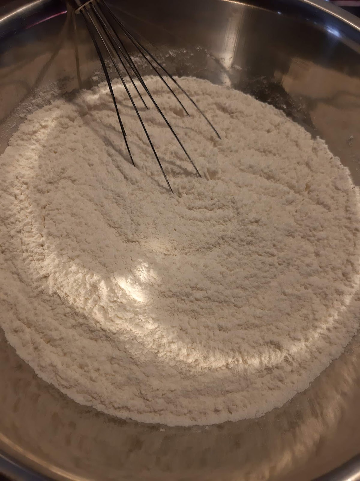 - Започвам да добавям малко по малко от брашното към течната смес.