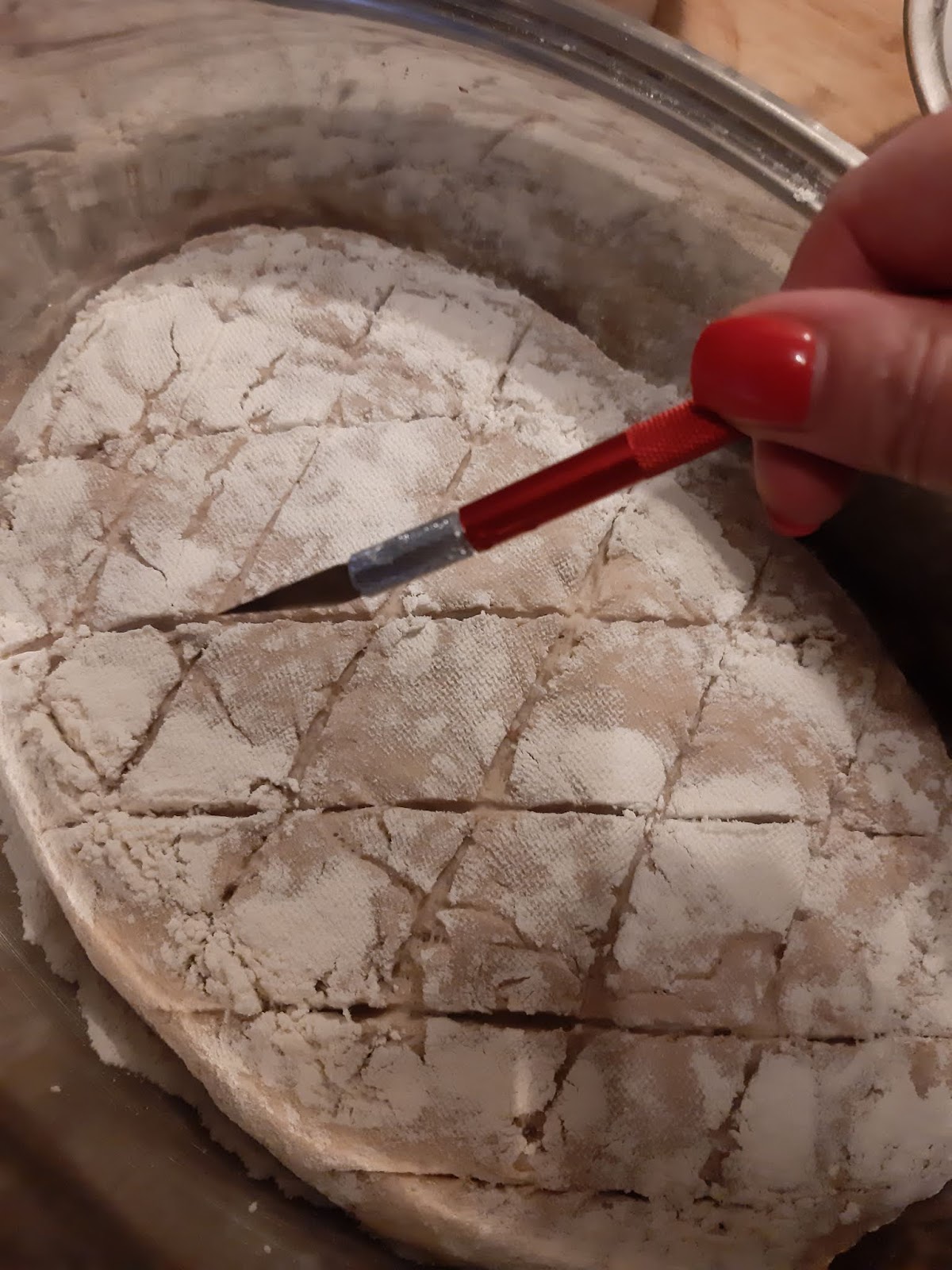 - С помощта на скалпел направих и тези типични за това хлебче разрези. Може да се използва и ножче за бръснене, но аз не съм намерила такова и затова използвам скалпел.