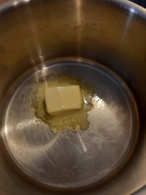 - Разтопявам маслото на дъното на тенджерата.
