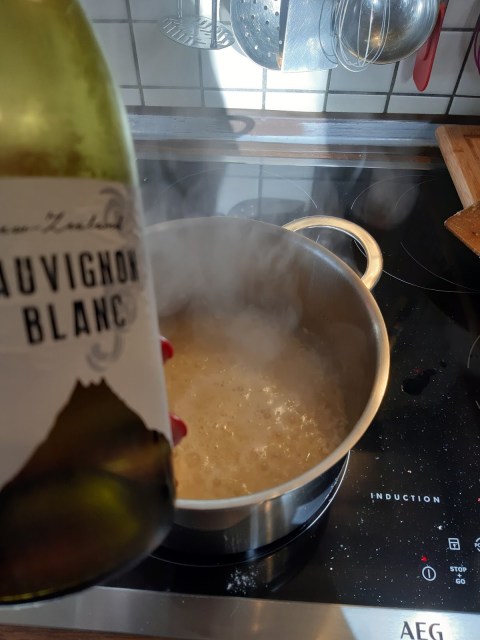 - Заливам всичко с виното …