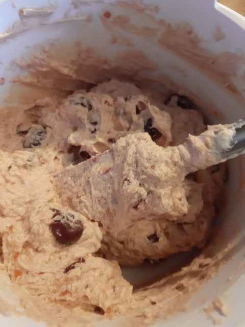 - Миксер не използвам тук, за да не се разкашкат черешите. Бърках само със силиконовата шпатула.