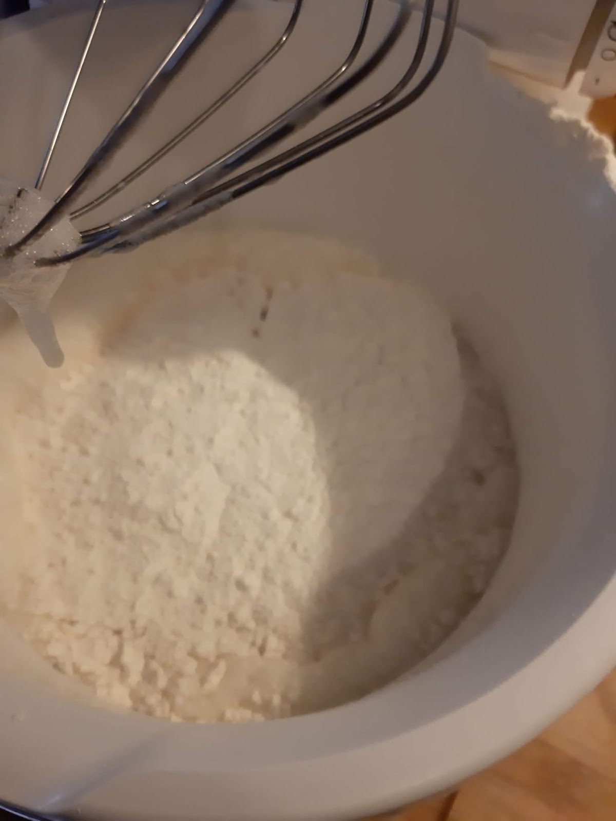 - Добавям малко по малко от брашното. Аз използвах брашно от спелта, но оригиналната рецепта е с бяло брашно.