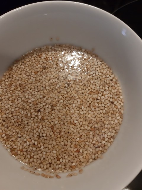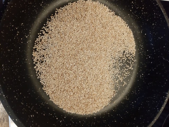 - От предишната вечер запекох сусама в сух тиган.