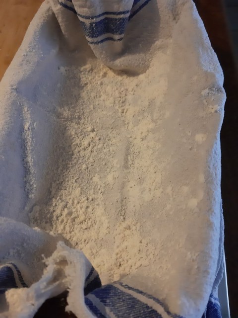 - Кърпата поръсих с брашно.