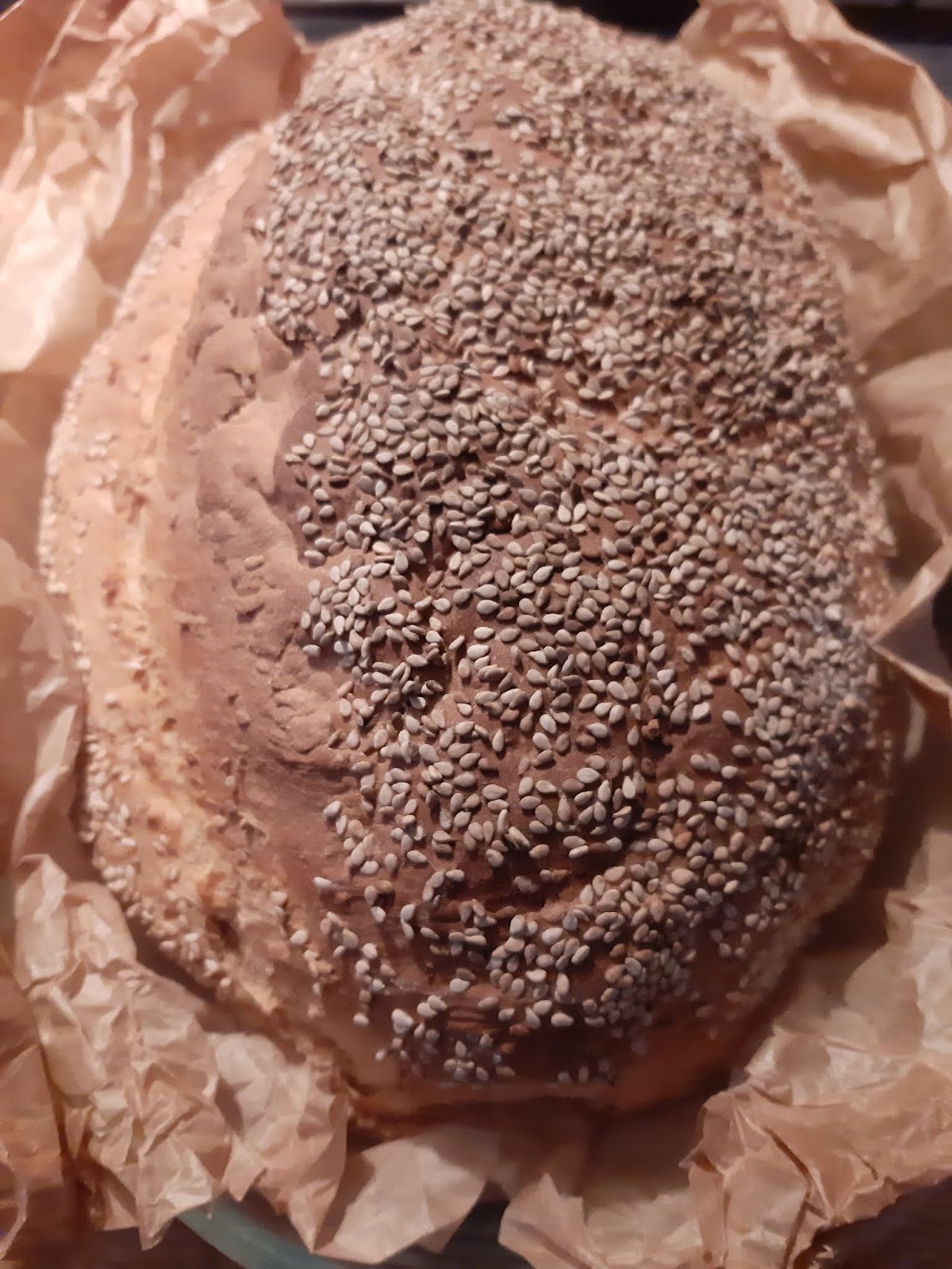 И не се изненадвайте, че това хлебче се изпича до много тъмно. Така трябва да бъде, поради многото семена отгоре, които се изпичат и му придават един допълнителен аромат.
