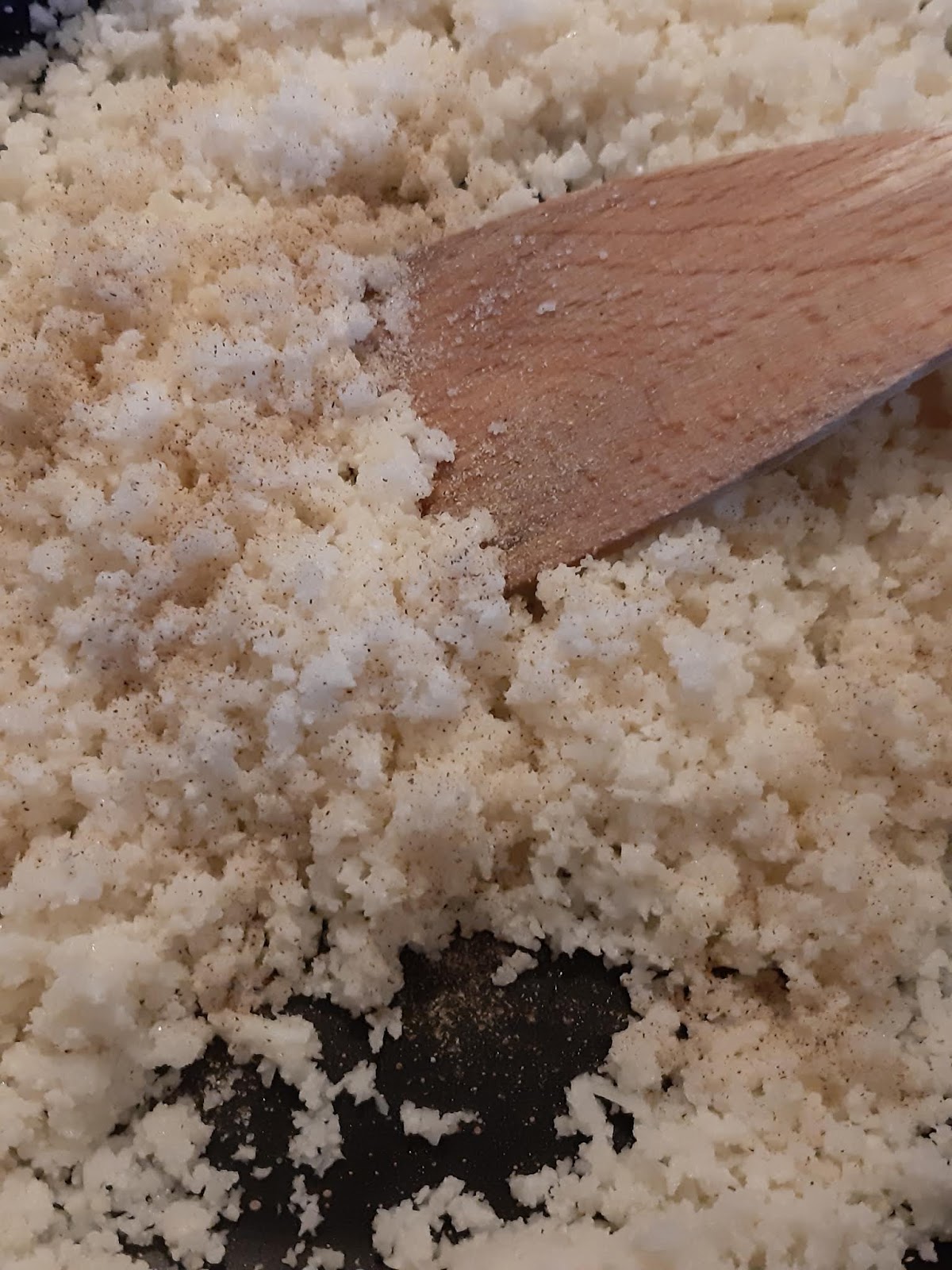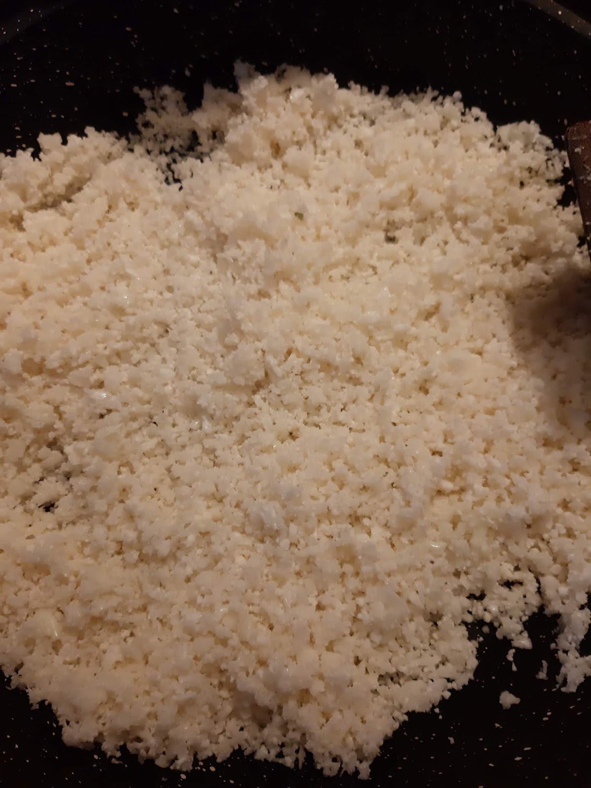 - Странен е вкусът на кокосовата мазнина и за мен, но в случая неутрализира типичния аромат на зеле при карфиола, а ние искаме да се заблудим, че ядем ориз. Е, трудна работа, но при мен дава резултат.