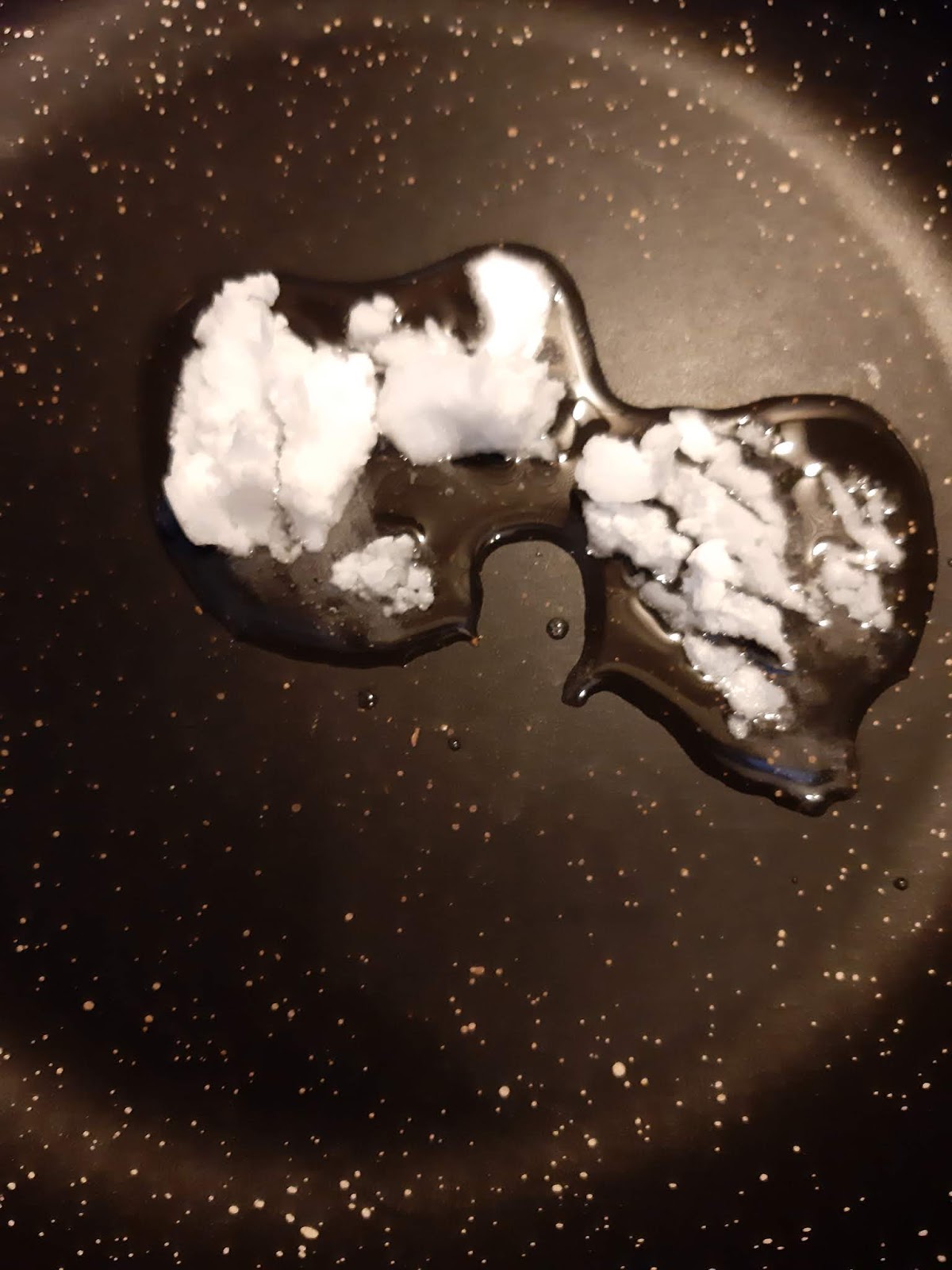 - Загрявам кокосовото масло в тигана.