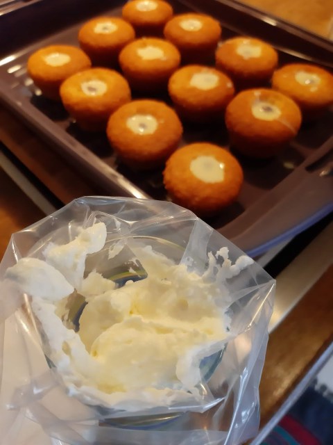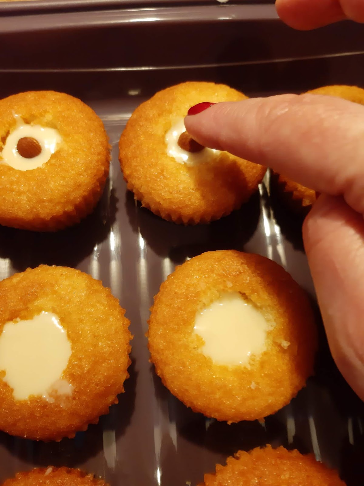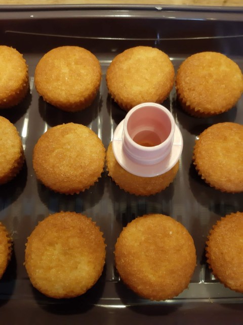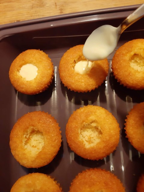 - На другия ден правя дупка във всяко кексче, като внимавам да не ги пробия.