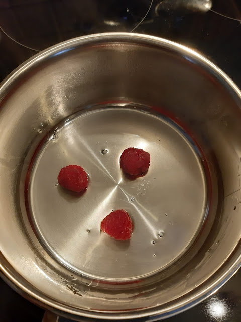 - Потапям всяка малинка в разтопения желатин, изцеждам и декорирам върху крема.