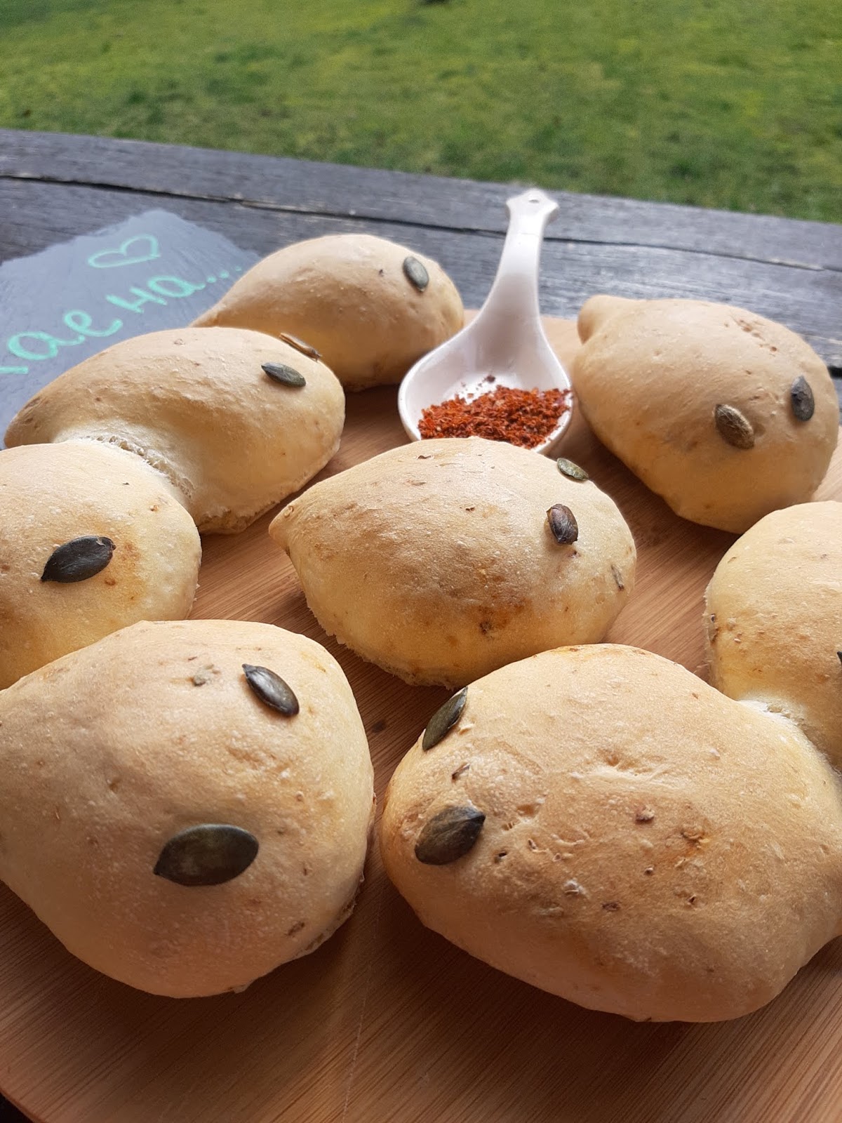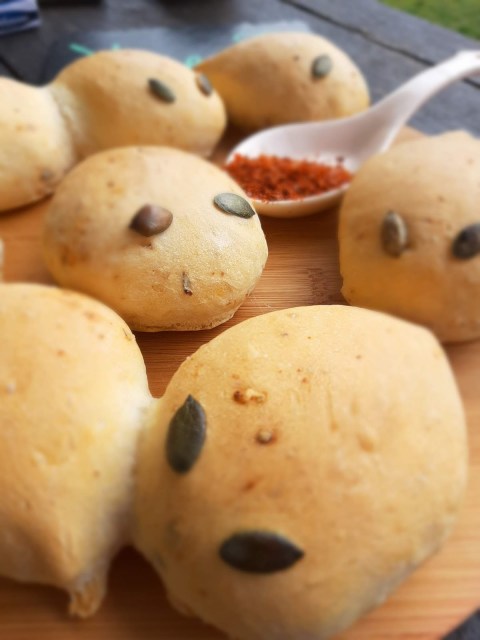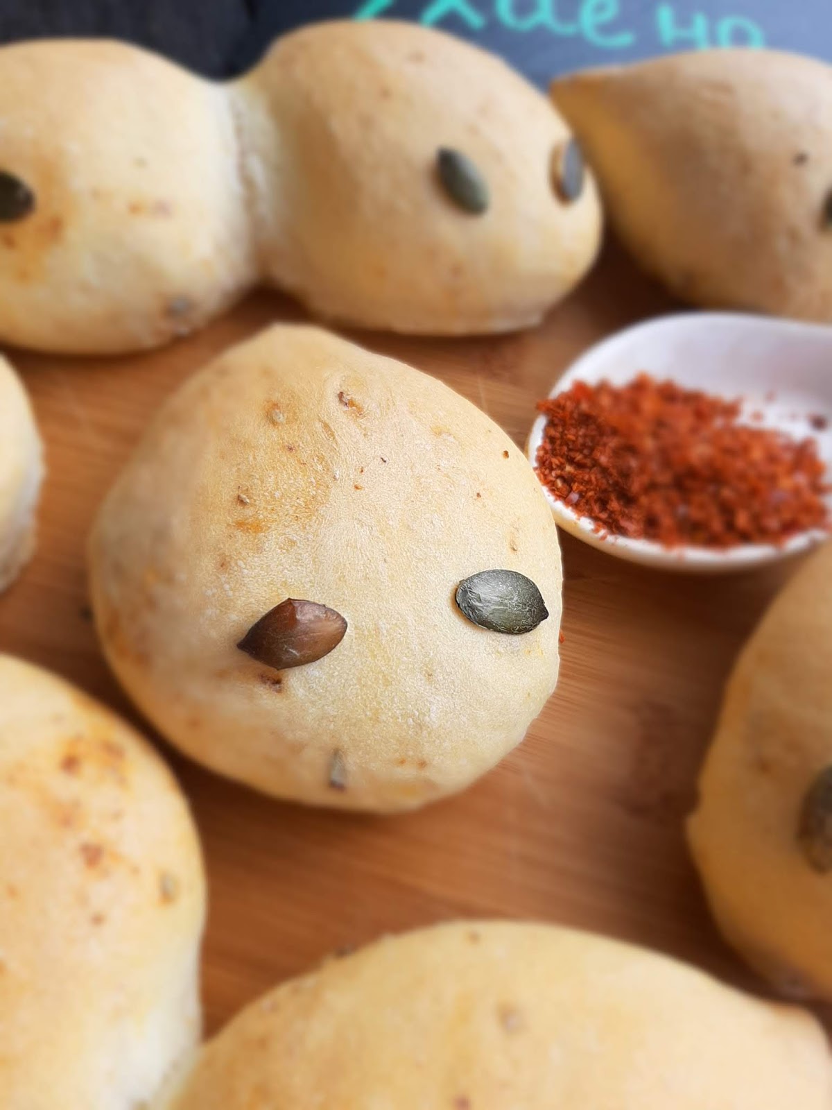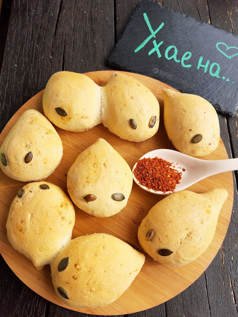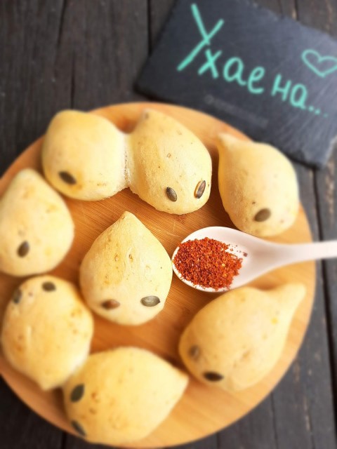 - Залепих тиквени семки за очи на дракончетата. С върха на ножица можете да клъцнете тестото за уши и по дължина на опашката за бодлите на дракона, но аз забравих 😂😂😂😂