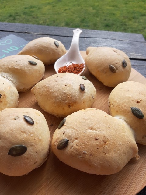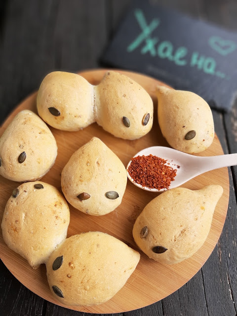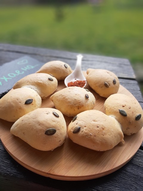Новото, което изпробвах при тяхното приготвяне е комбинирането на вентилатор и горно и долно печене. По принцип избягвам при печенето на тесто с мая да използвам вентилатор, но в случая само за 5 минути го включих в началото на тяхното изпичане, за да може вентилаторът да разнесе влагата от водата на дъното на фурната навсякъде и самите хлебчета получиха много бързо желаната коричка. Пробвайте и Вие, ако обичате хрупкава коричка.