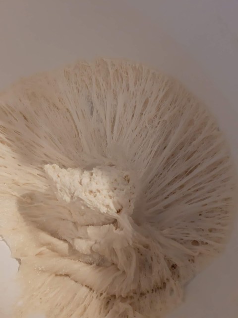- След 10 минути месене тестото е меко и нелепнещо. Оформям с ръце на топка в купата и покривам с фоли за свежо съхранение.