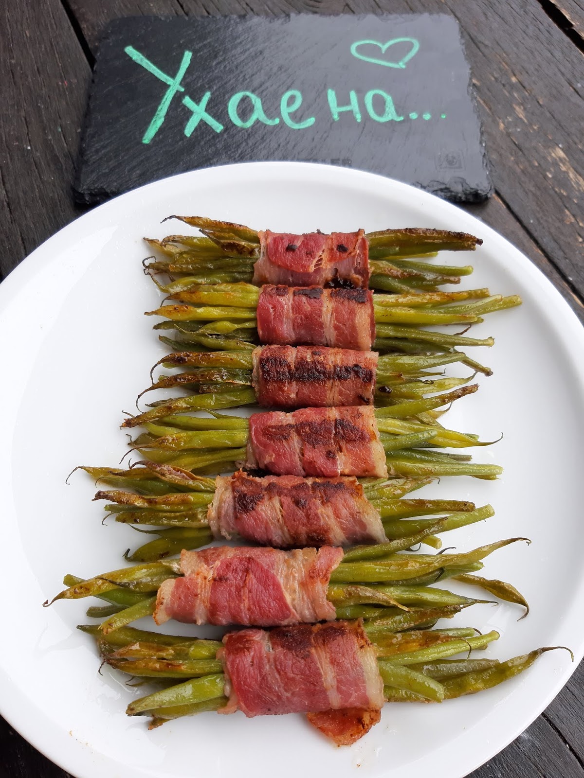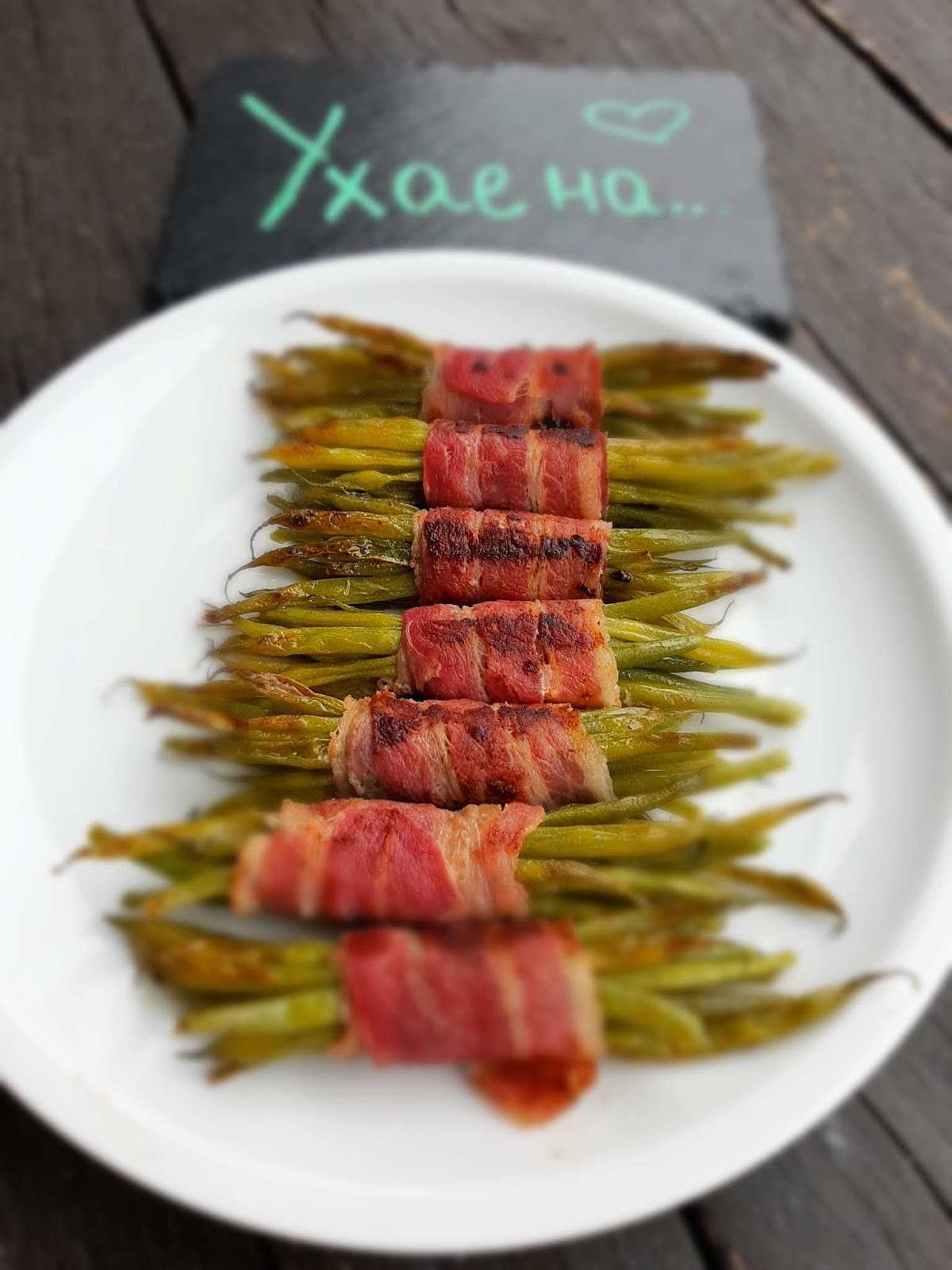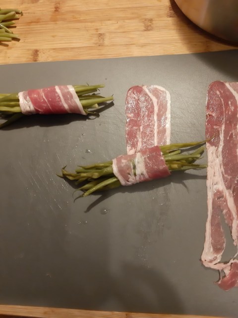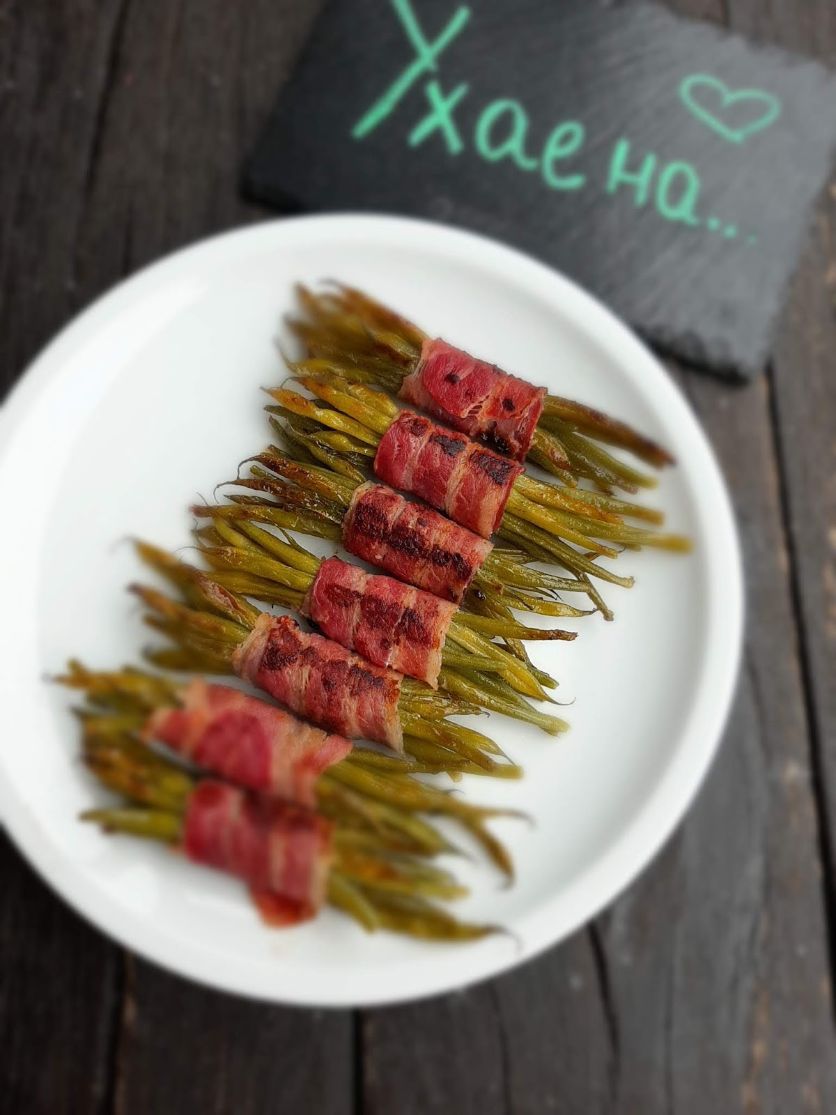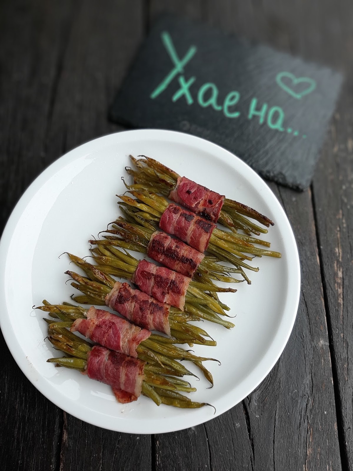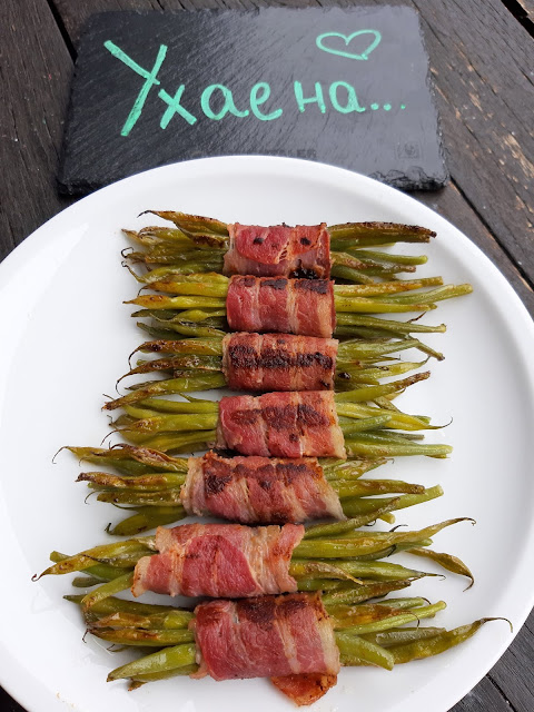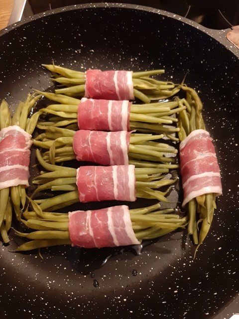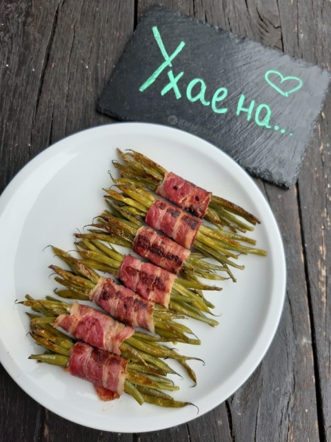 • Сервирам зеления фасул в бекон към меса – телешко, говеждо, свинско, пилешко.