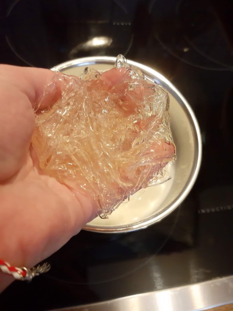 5 листа желатин (6 листа отговарят на 1 пак. желатин на прах)