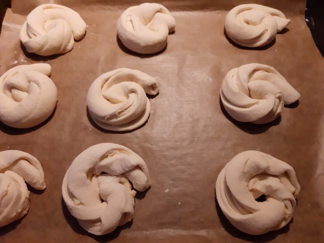 - Покривам с кърпа и оставям на топло да втасват за около 1,5 часа.