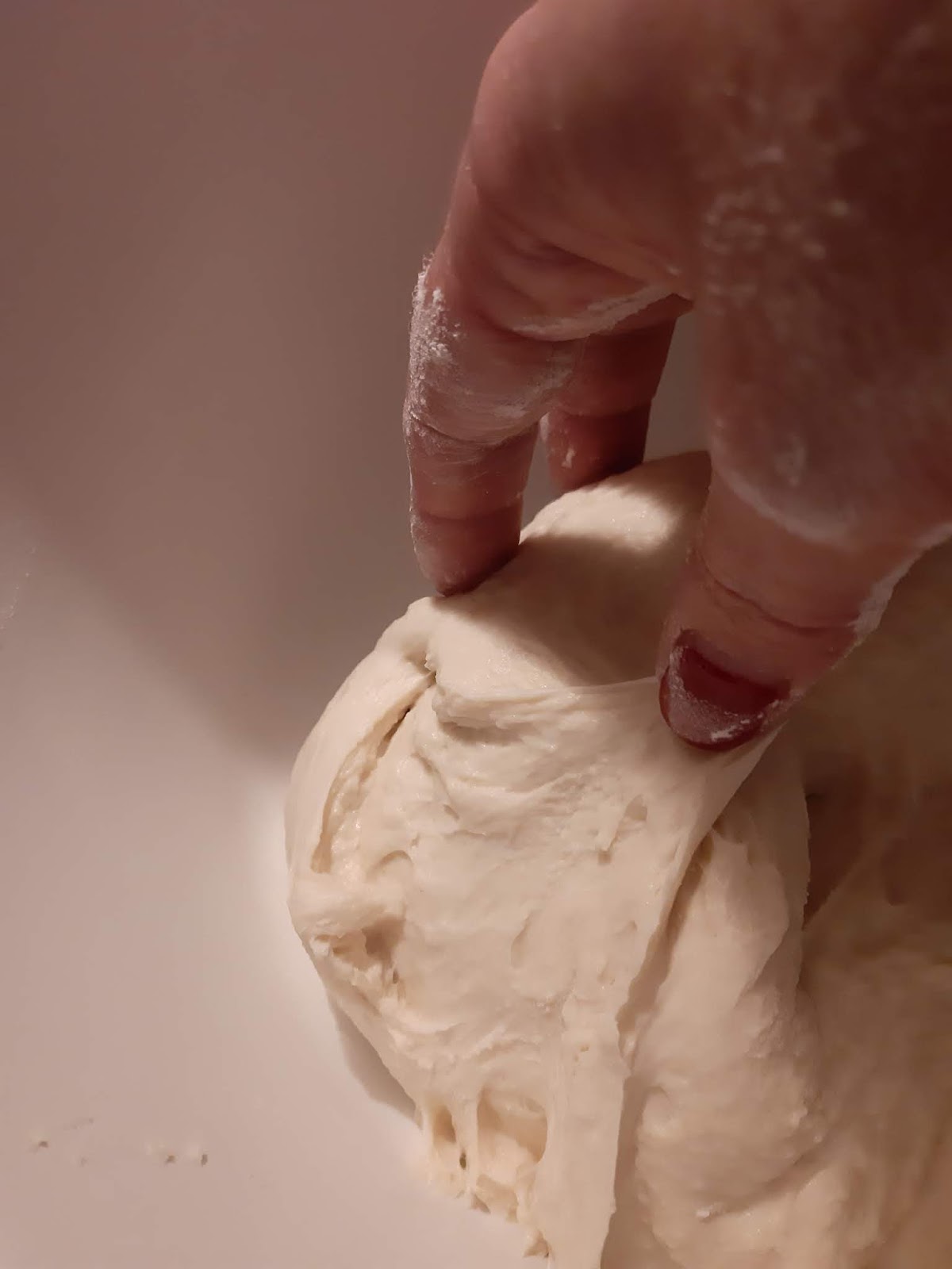 - Ето така изглежда добре омесеното тесто. Хем е меко, хем не е лепкаво, а и конци има.