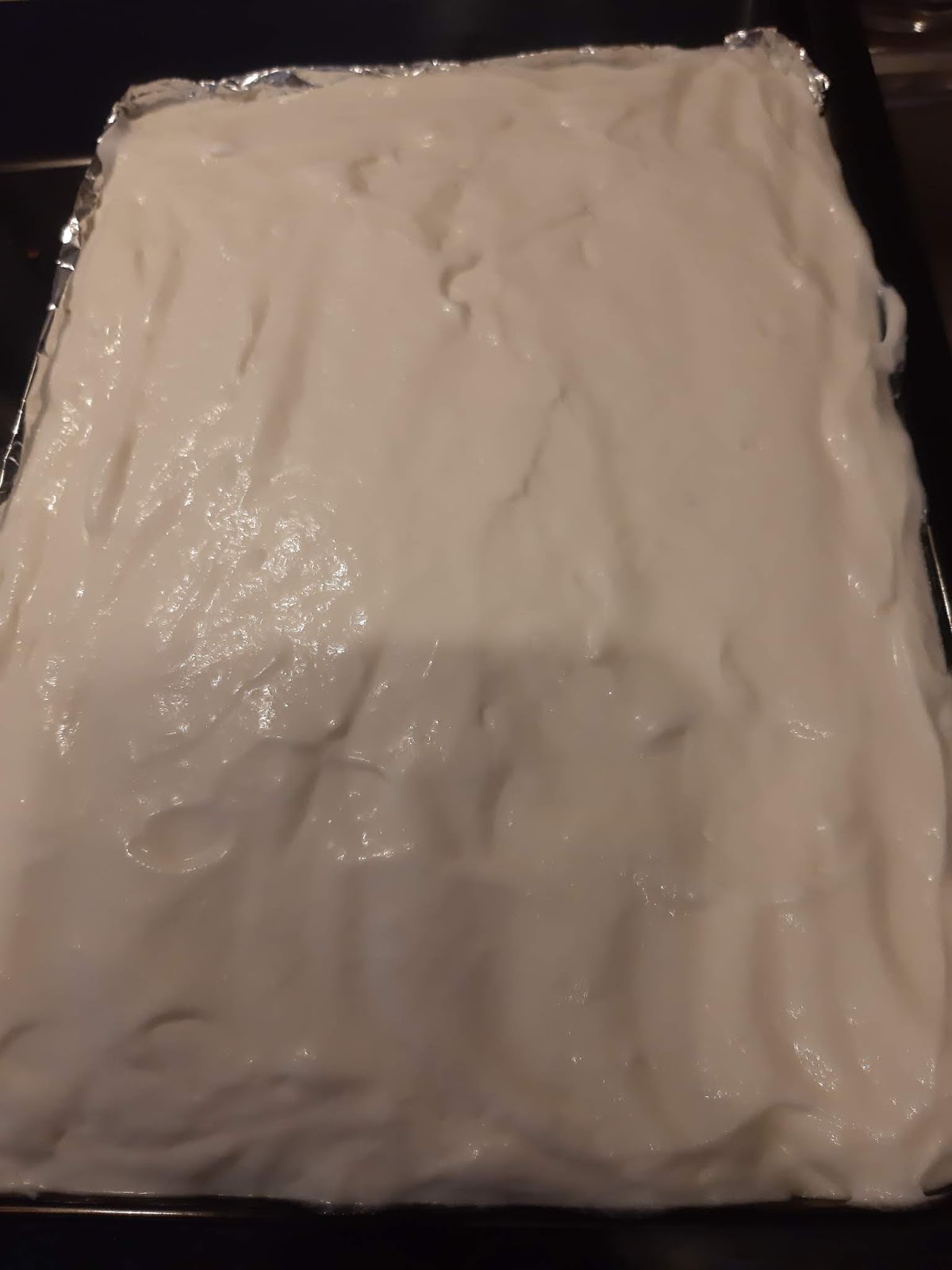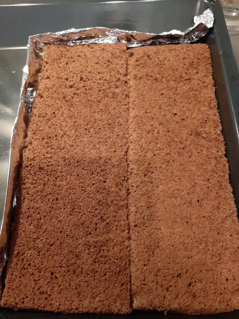 • Готовия блат обърнах върху хартия за печене и покрих с кърпа до пълното му изстиване.