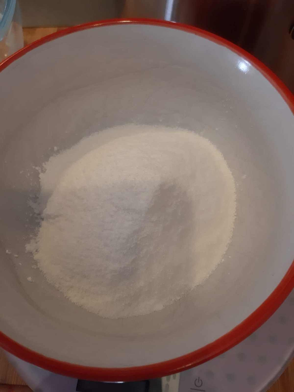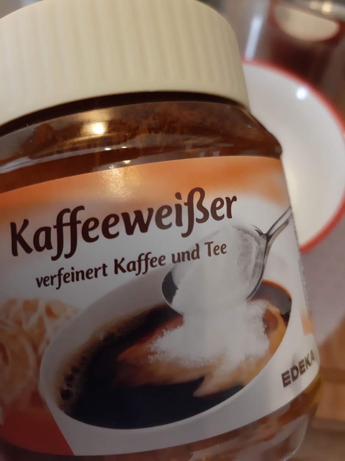 • За млечната смес е нужно да смеся първо нишестето със сухото мляко. В Германия не се намира често, или поне в нашето село няма сухо мляко. Но аз взех ето това, което е за кафе.