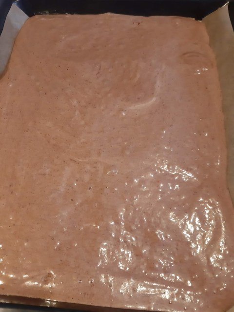 • Изсипвам сместа в тавата на фурната, покрита с хартия за печене.