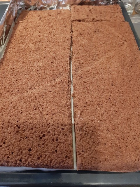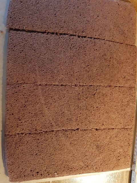 • Когато дойде време да сглобявам сладкиша си измерих ленти с ширина 10 см. Така реших, че ще имам после еднакви по размер парчета.