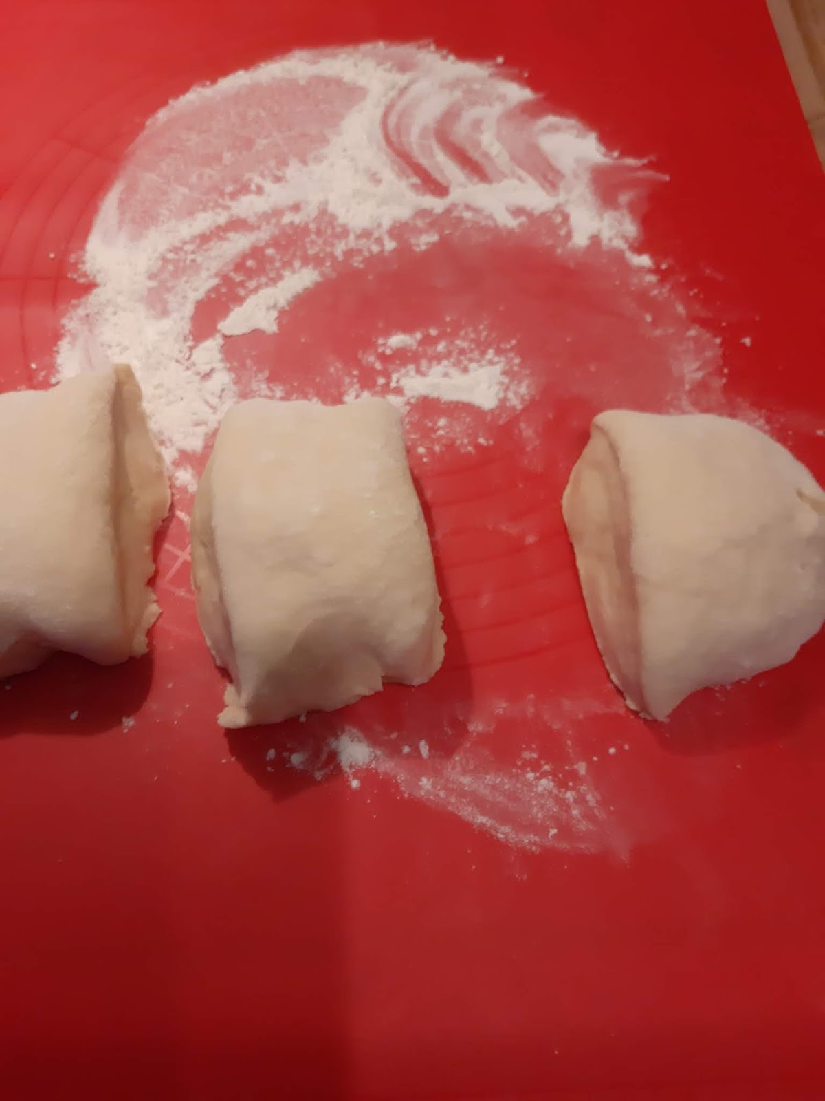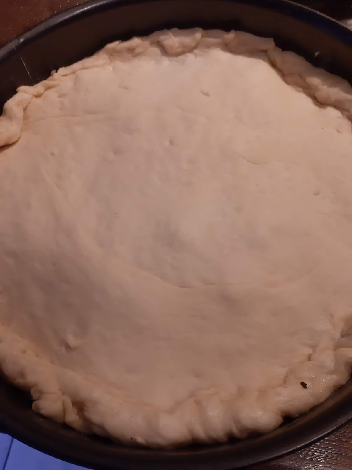 - Втасалото тесто премесих нежно, винаги внимавам да не изкарвам много въздуха от него.