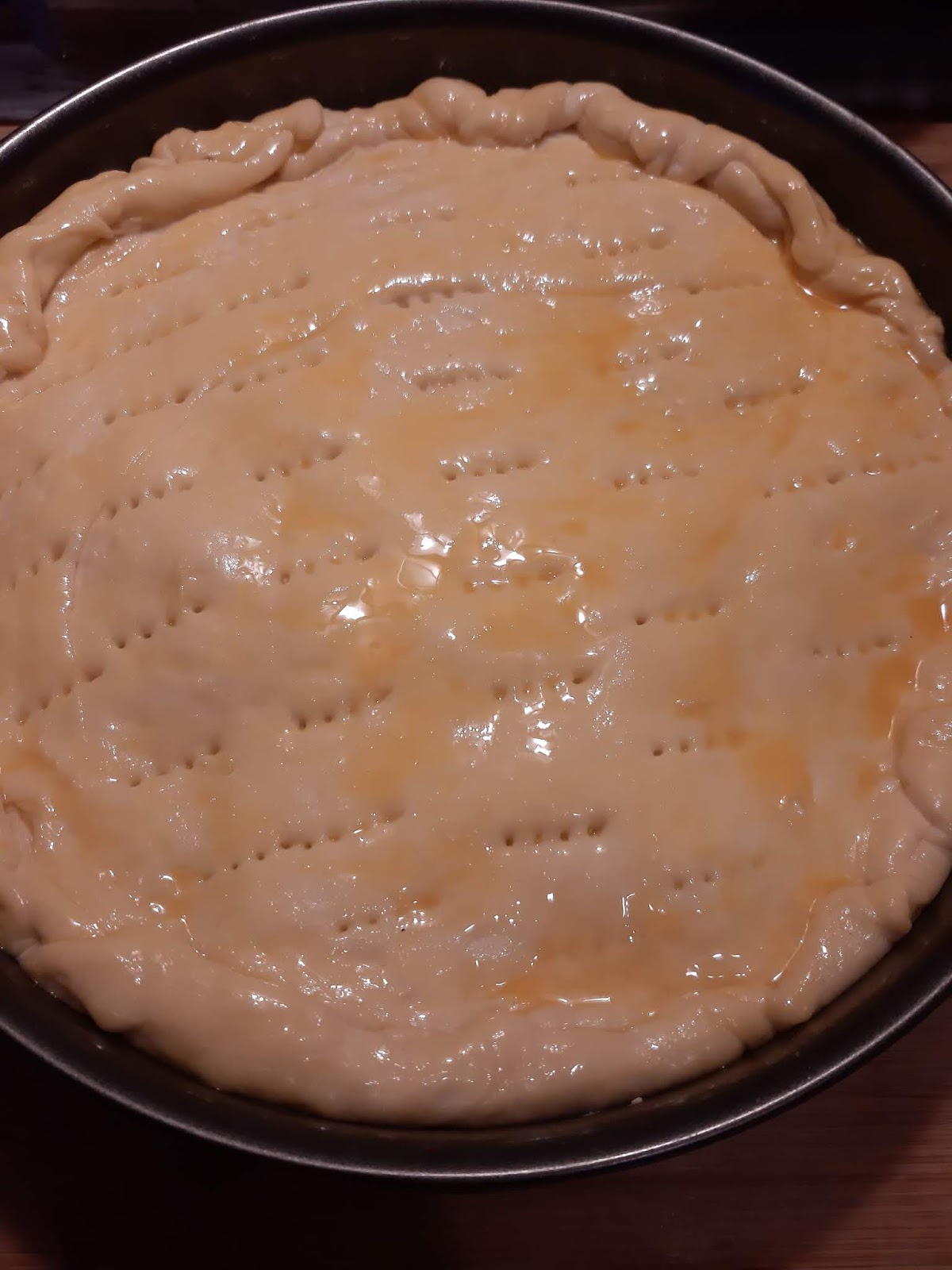 - Накрая сложих последната кора и защипах краищата с първата кора.