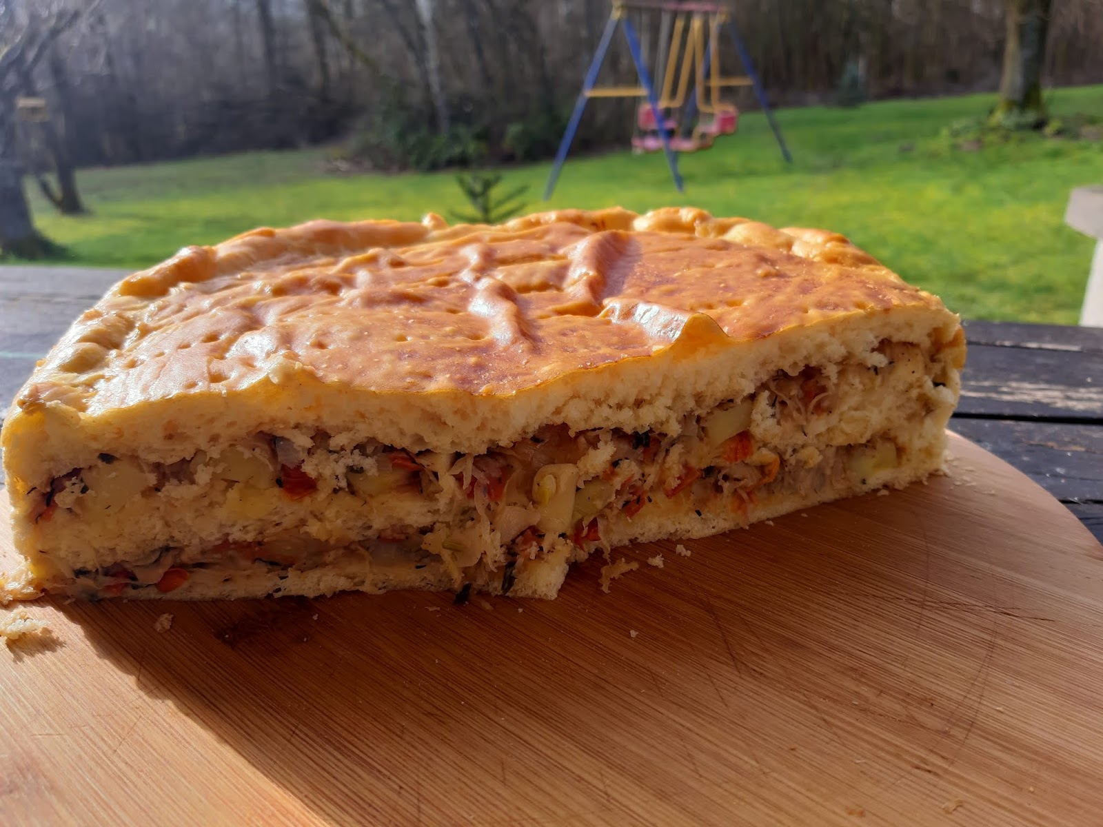 Днес изпекох лучник с кисело зеле. Идеята ми дойде от книгата на Лидл, а самата рецепта е на Манчев.