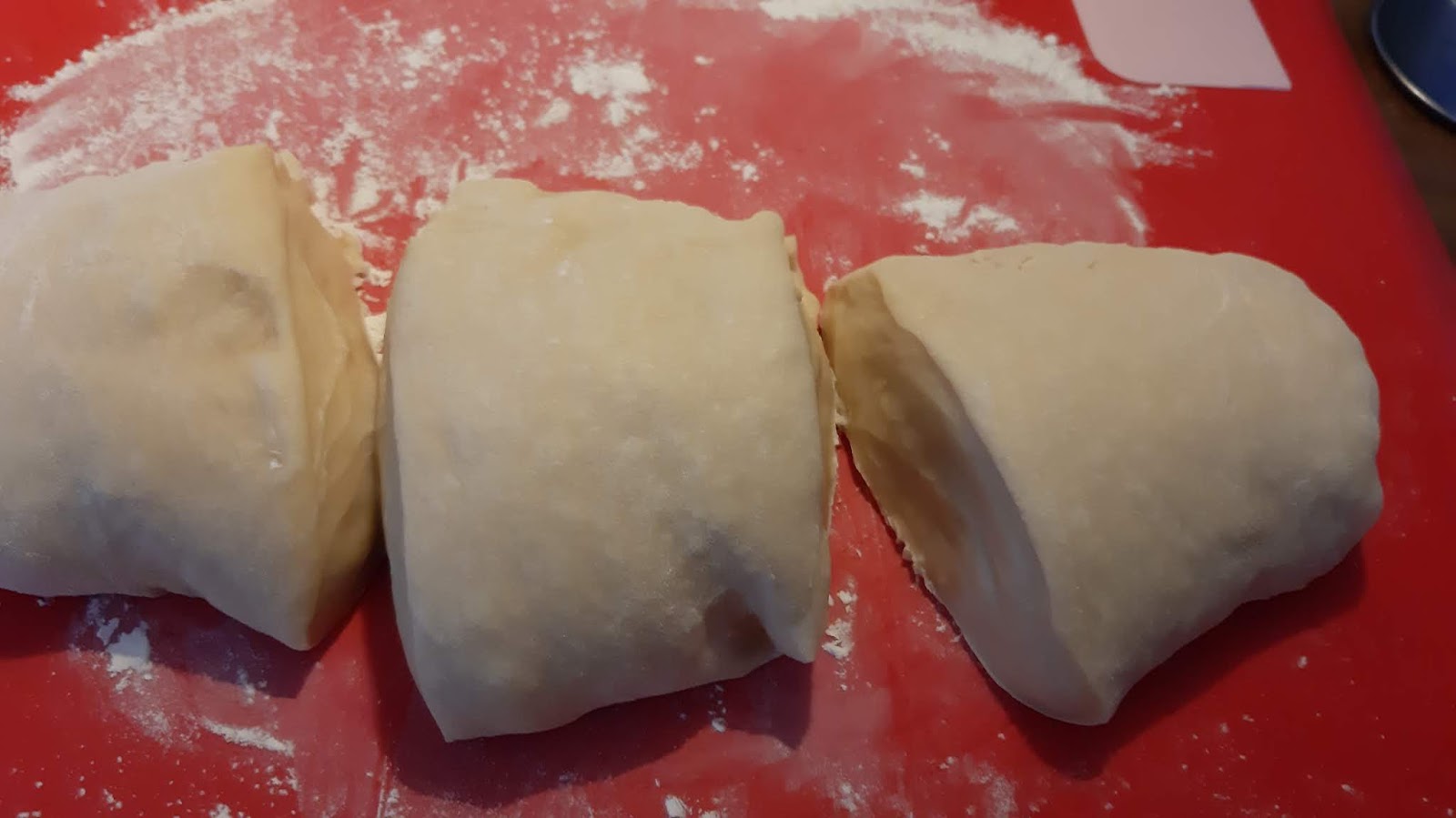 • От втасалото козуначено тесто оформям козунаци, козуначени рула, кифли, понички, бухти.