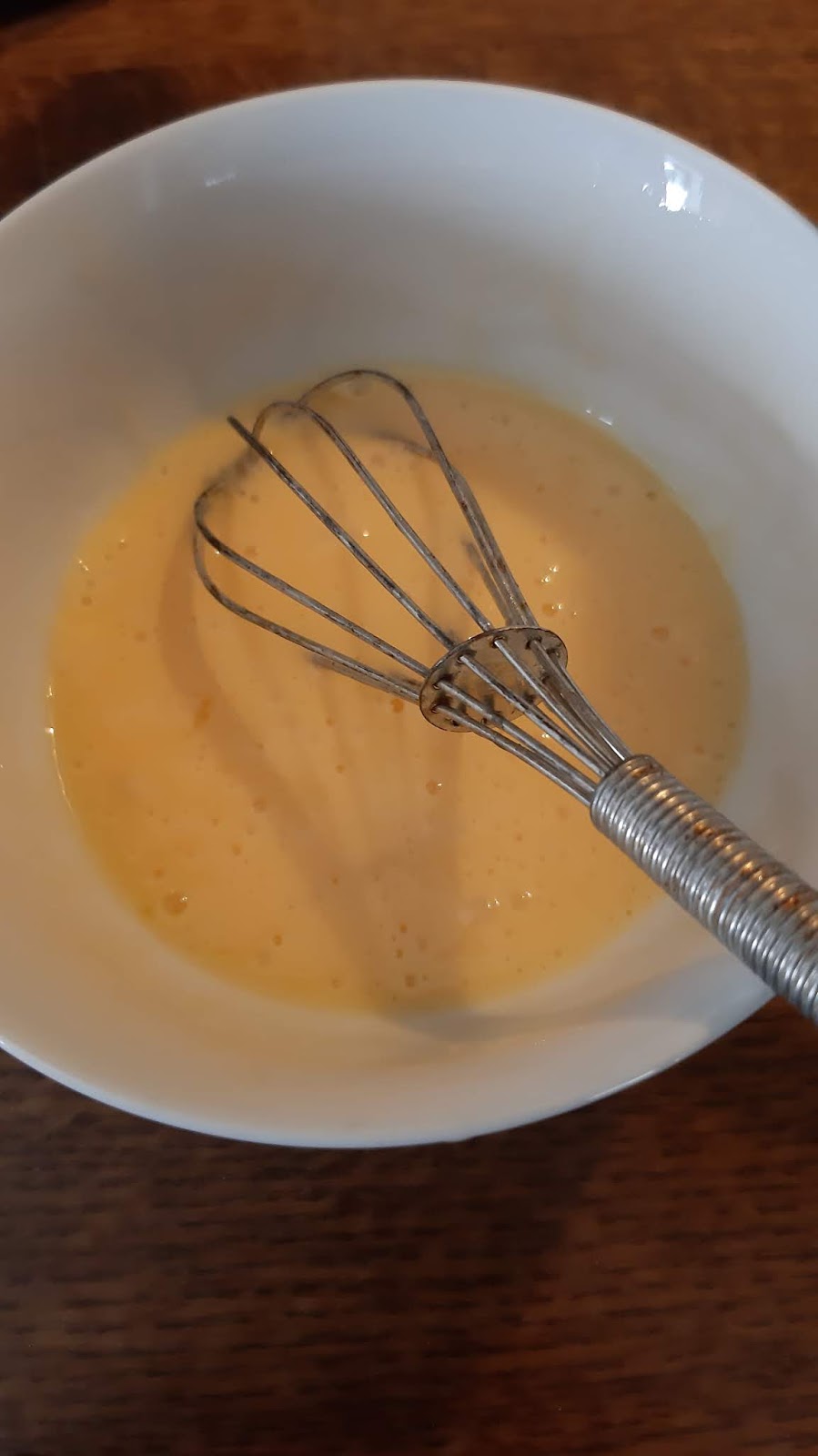 - През това време разбивам останалото яйце и жълтъка, заедно със сока от лимона.