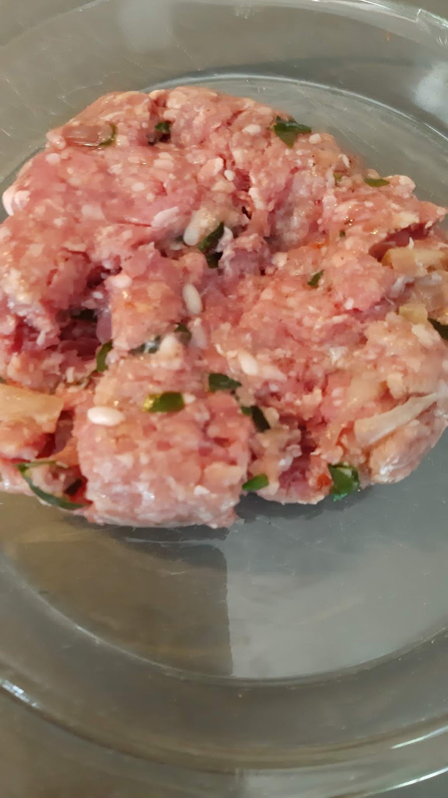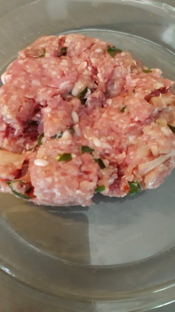 - Добавям към нея 15 гр ориз, белтъка от едното яйце, малко от кромидия лук, черен пипер, малко от ситно нарязания магданоз, сол.