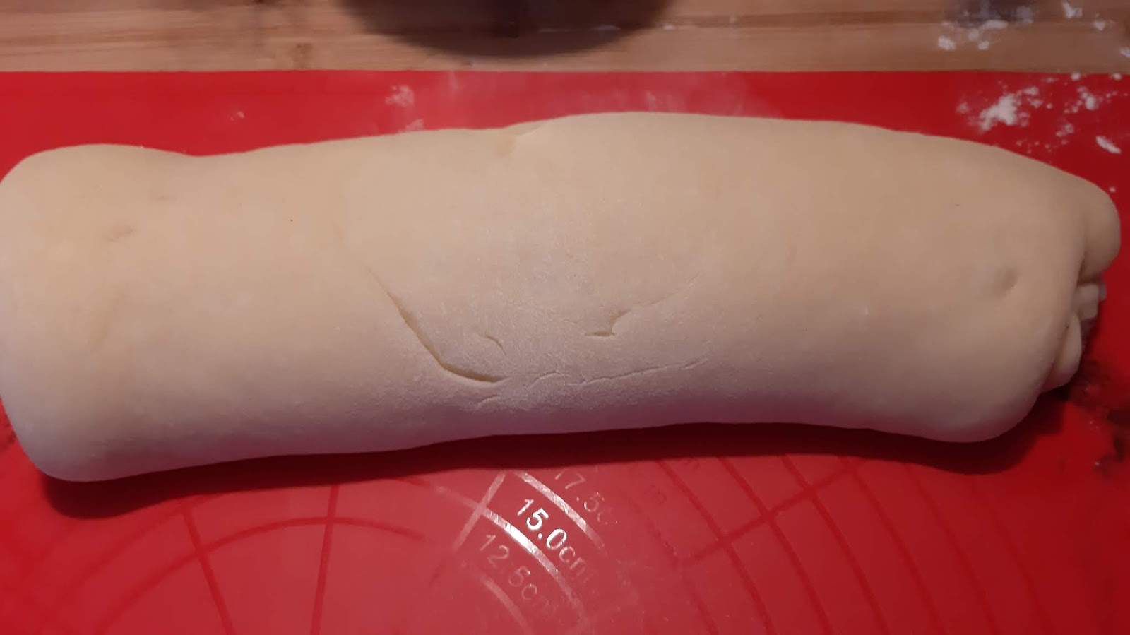- Подредете трите рула напречно в тавата на фурната с хартия за печене. Така те ще втасват равномерно нагоре, а не настрани.