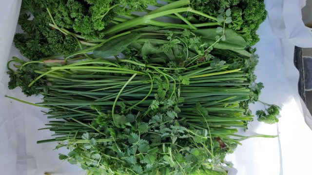 Ами освен познатите ни магданоз, копър, див лук, киселец, естрагон (тарос) и кресон, има и едни непознати за мен билки. Ще ги изпиша с немското им име, защото ми е много трудно да намеря превод на българските. Пък Вие сами за себе си ще си ги преведете. Има Kerbel, Pimpinelle, Borretsch. Попитах Гугъл и Уикипедия, но не съм доволна от превода и затова оставям на специалистите тази работа.