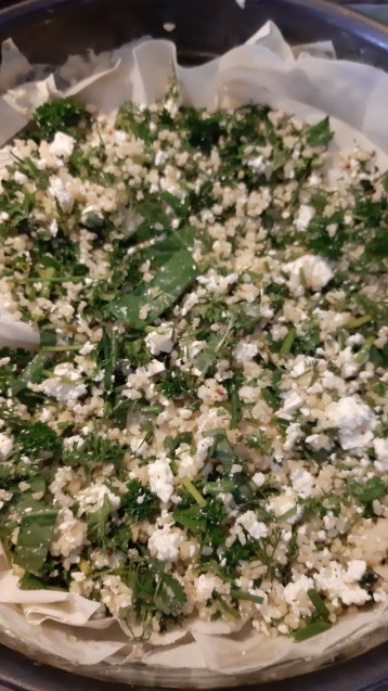 Отвори шкафовете и поразгледах какво имам и отдавна не съм приготвяла. Гледам, булгур. Ехаааа, я да видя какво пишат старите кулинарни книги! Ами, да! Баница с булгур или така нареченият булгуреник. Още повече, че и с яйцата не съм много добре (нямаше преди седмица в магазина), а в булгуреника няма яйца.