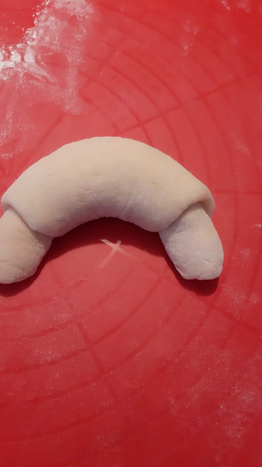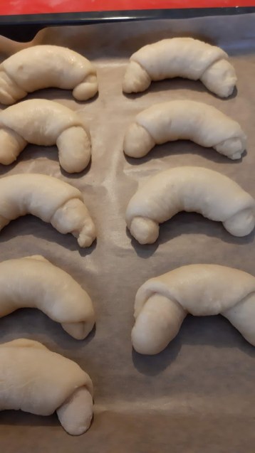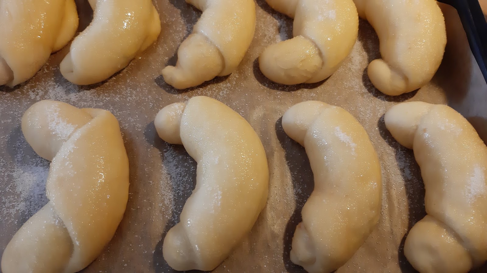 • Подреждам кифличките на разстояние в тава с хартия за печене.