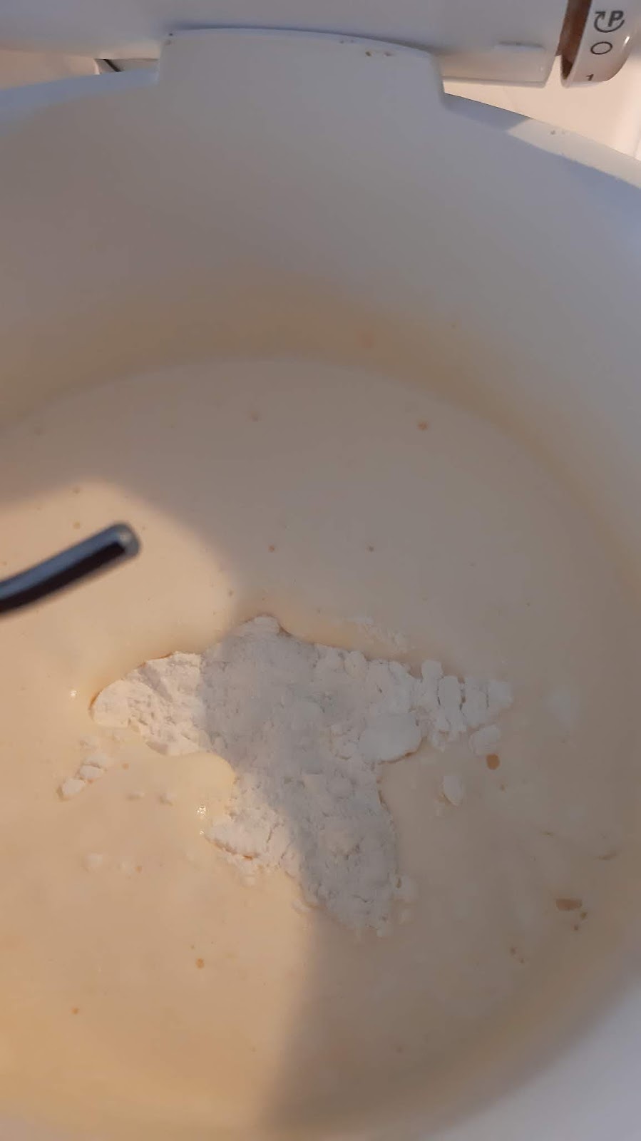 - Към брашното добавих солта и бакпулвера, а ако използвате сода я добавяте към киселото мляко, за да шупне.