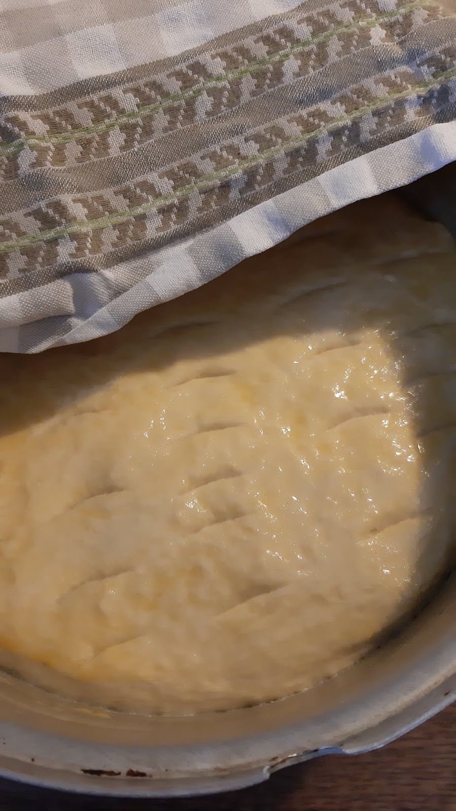 - Покривам с кърпа и оставям за около 30 минути да си почине. Това тесто не втасва, но винаги се препоръчва една почивка. Може и без нея, пак ще получите вкусна содена питка. Но по-добре е да изчакате малко.