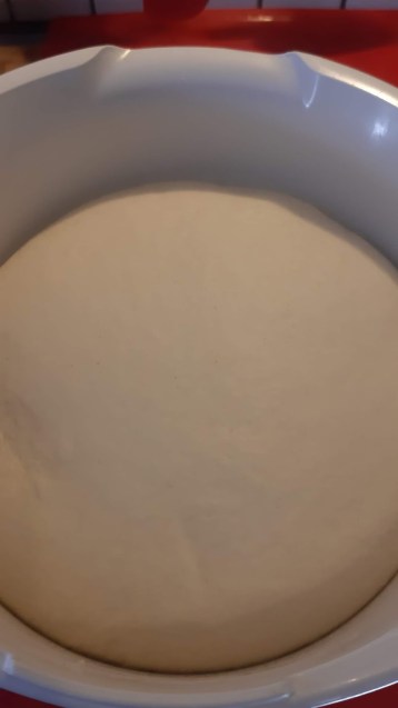 - Омесих тесто, което оформих на топка и покрих с фолио за свежо съхранение и капак.