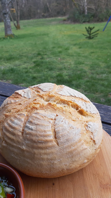 Оригиналната рецепта е с пшенично брашно тип 550 и тип 1050, но аз нямам в момента налични. Излизам рядко на пазар, а в шкафа имам спелта. Моето хлебче със спелта.