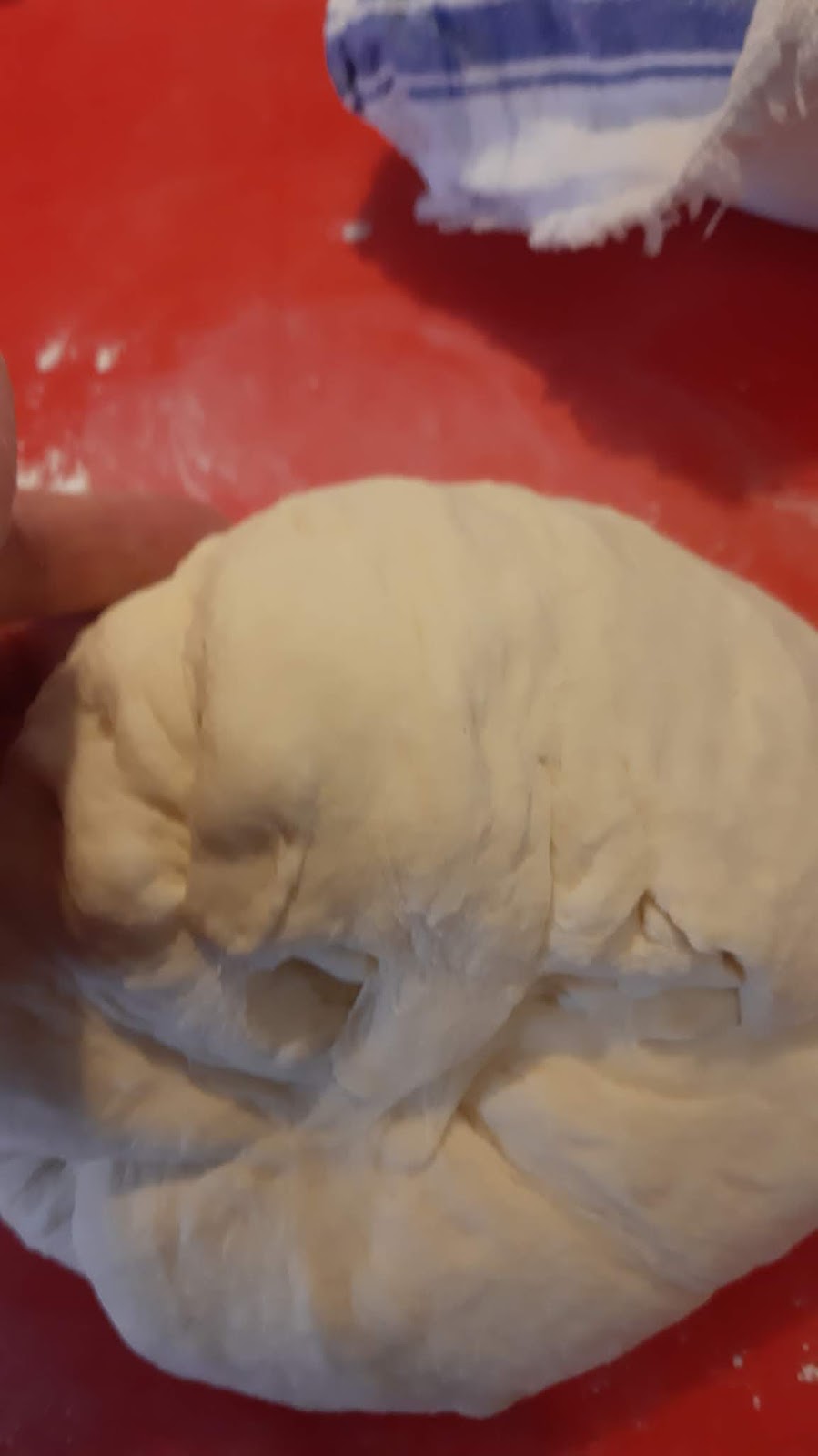 - Меси тестото около 5 минути като добавях още брашно до получаването на хубаво, леко жилаво тесто, което не лепи.